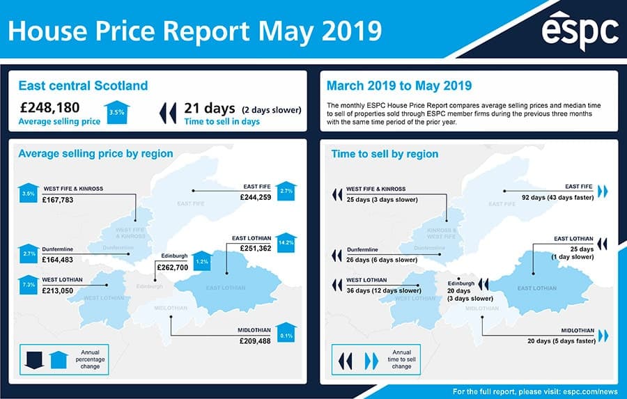 An increase of 14.3% year on year (YOY) in the volume of properties sold in east central Scotland was noted between March and May 2019. The City of Edinburgh recorded 18.9% YOY rise on sales volume for this period.