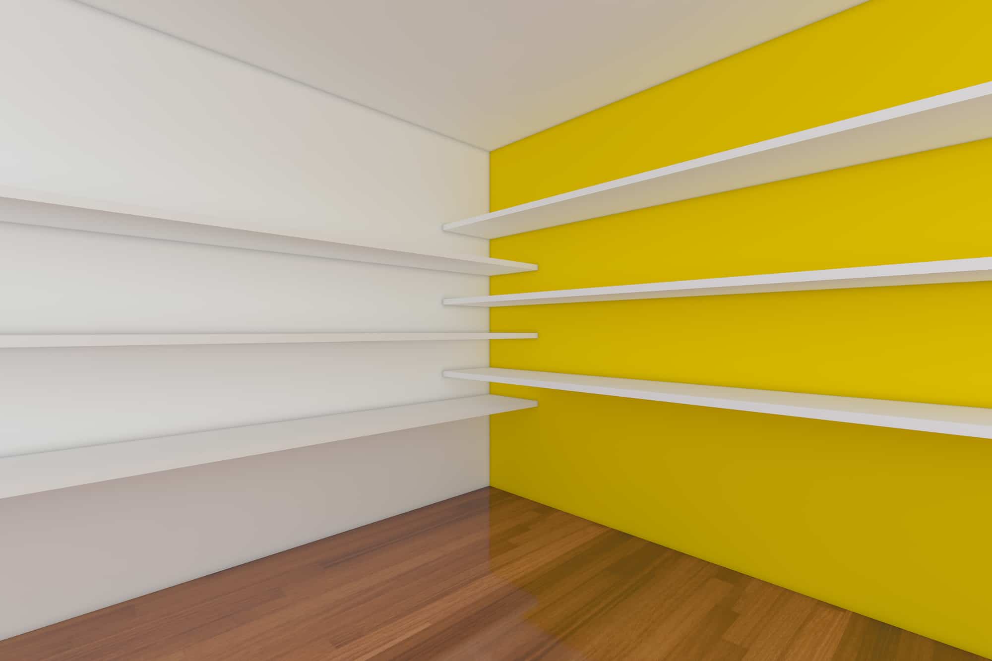Rooms have corners that are often neglected, but they are the perfect place to put a small shelf or several shelves going up the wall. In a larger property these can be used for an eye-catching display of objets d’art (ornaments). In a small flat they could be used for spices in a kitchen or as an alternative to a bedside table in a bedroom.