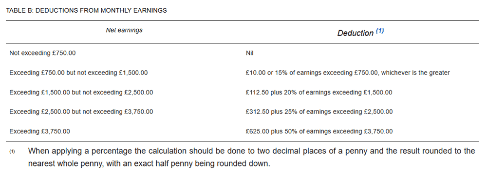 The Regulations also adjust the table bandings which determine how much can be deducted from earnings above the protected amount. Ongoing deductions under existing arrestment’s will also be calculated using these bandings.