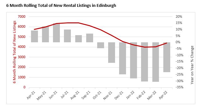 The cumulative impact of these changes, combined with challenges during the pandemic, and a strong sales market, has led many small-scale landlords and investors to reconsider their position in the sector. Over the past couple of years stock levels in the rental sector in Scotland have been consistently falling. New listings coming to the market on the major portals so far in 2022, are around 20% down on the same time last year.