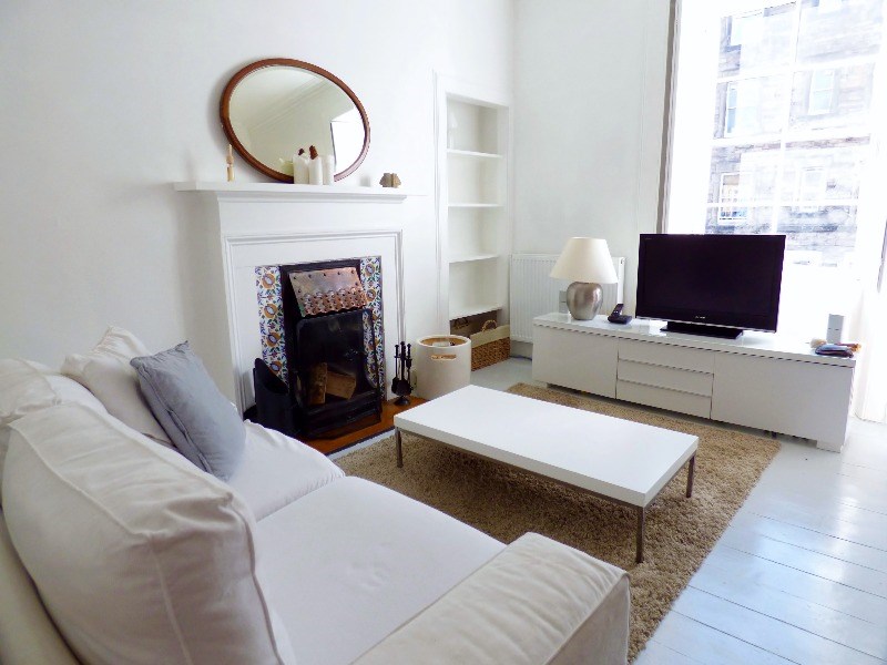 Charming two/three bedroom terraced colony flat set amongst the highly sought after Abbeyhill Colonies and designed by Richard Murphy Architects. Presented to the market fully furnished and immaculately presented throughout, this unique property is comprised of: Welcoming L shaped entrance hall with stairs to the upper floor. Spacious living room with window overlooking the front garden, open shelved wall press, period style open wood fireplace with tiled hearth, painted floorboards and attractive original cornicing. Situated to the rear is the newly installed kitchen/dining room, with modern fitted units, gas hob and electric oven with extractor hood over. A large dining table with two benches provides a welcoming eating environment. Adjacent to the kitchen is the bright modern study/optional third bedroom with window to the rear. Upstairs there is a good sized bathroom, with white three piece suite including over bath shower and tiled splash-back. The bright and spacious front facing master bedroom with triple section dormer window and built in storage is flooded with light thanks to additional skylight windows. There is a further spacious bedroom, set to the rear with exceptionally large dormer window providing abundant natural light and views of Arthurs Seat. This room has a single bed which extends to a double if necessary. This tastefully decorated family home further benefits from traditional wood framed sash and casement windows, gas central heating, good storage, retention of period features, a well-tended private front garden and free on street parking to the front and elsewhere within the immediate area.