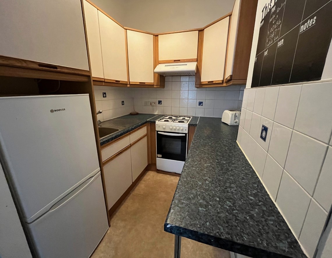 Entrance hall, shower room and WC. Large double bedroom with walk in cupboard. Lounge/kitchen, well-fitted and equipped kitchen with oak fronted units and good range of appliances. Additionally, the property benefits from double glazed windows and is permit controlled parking.