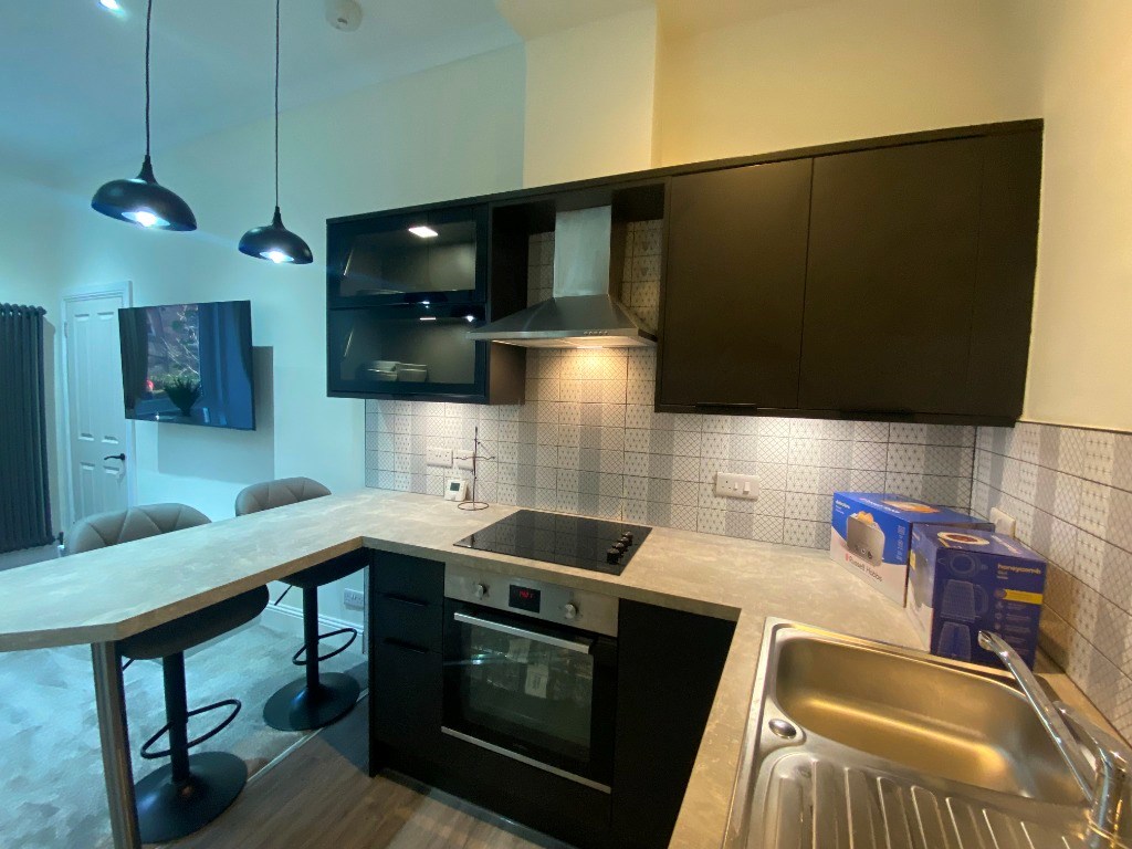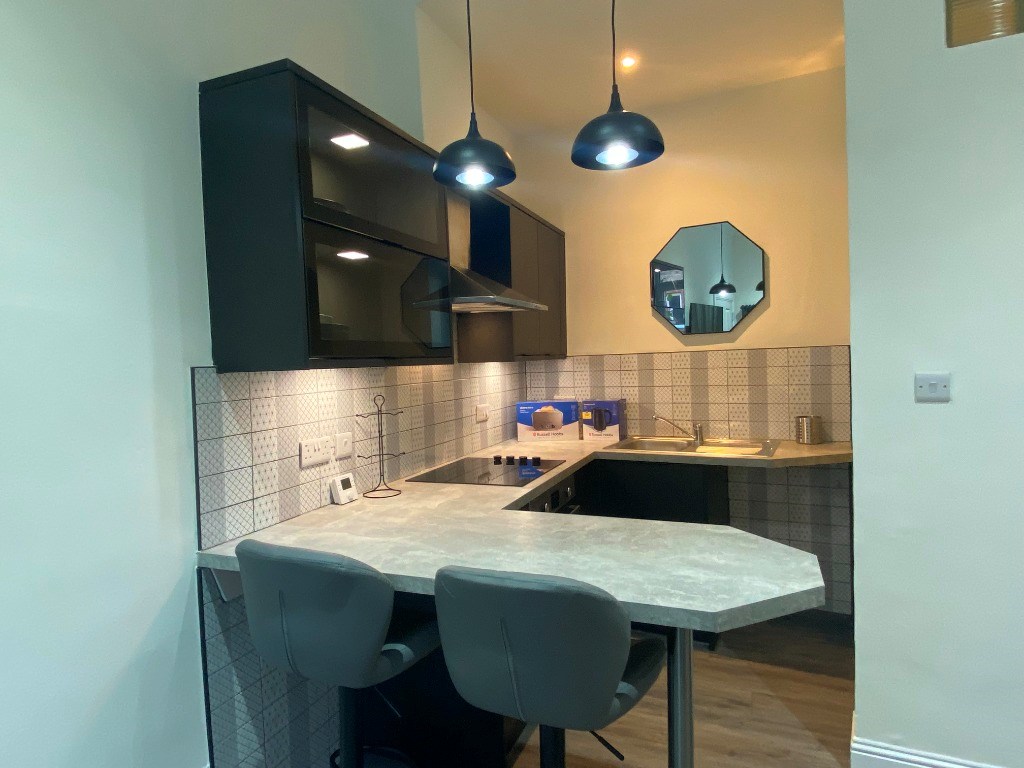 This completely refurbished property comprises an open plan lounge with fully fitted modern kitchen, a double bedroom and a stylish modern bathroom with shower over the bath.