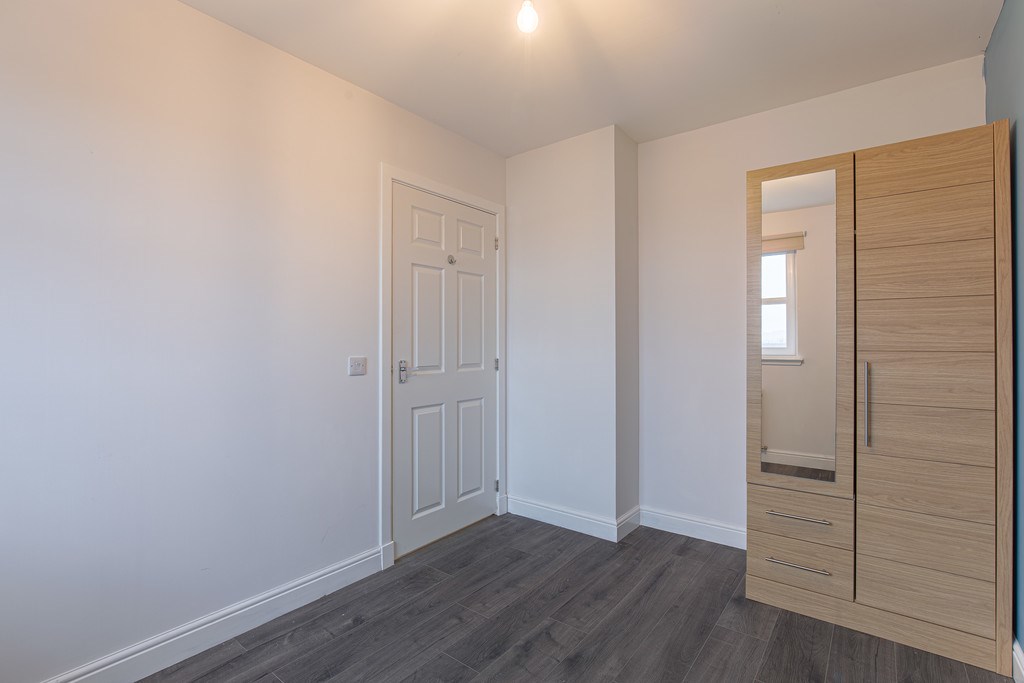 BEDROOM 2 The second bedroom for this property is located on the left as you reach the landing and greets you with a bright interior and comfortable amount of space to be fashioned into a tenant's perfect bedroom space. The room overall gives a calming blend of colour schemes and also comes with a sturdy and well sized wooden wardrobe complete with attached mirror.