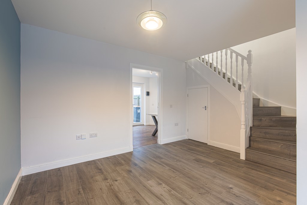 LIVING ROOM This room feels bright, fresh, and welcoming, with a lovely sense of space and flow. The grey wood-style flooring adds a modern touch and gives the room a clean, cohesive look that's both stylish and easy to maintain. Overall, it's a versatile, well-presented room that feels modern, calm, and ready to be styled.
