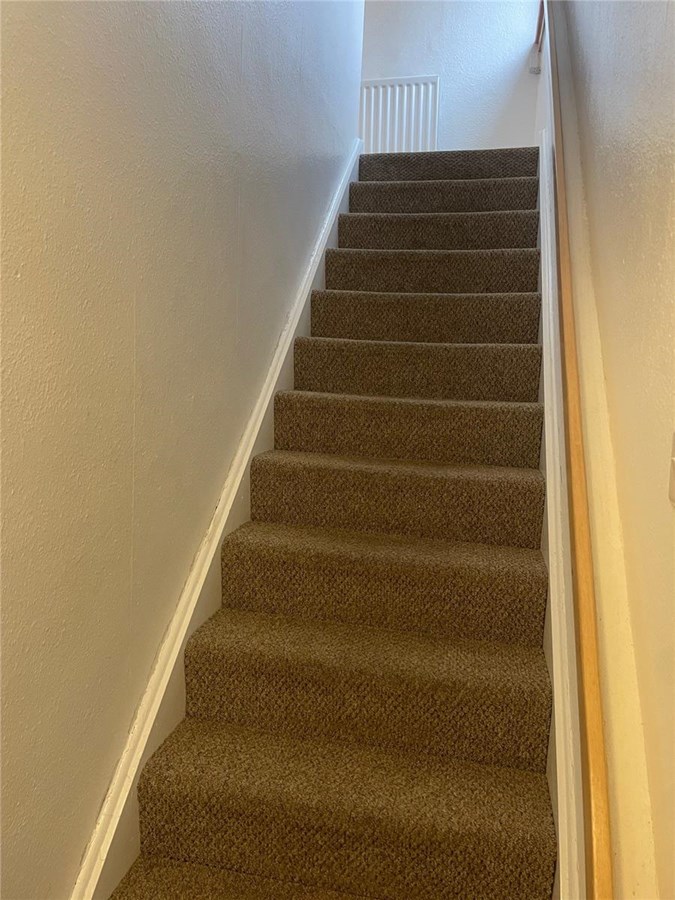 The property consists of a modern kitchen; large living area; master bedroom with a generous storage cupboard, another bedroom and family bathroom. There is also a cupboard in the hallway entrance. The property benefits from gas central heating, double glazing, and a private garden.