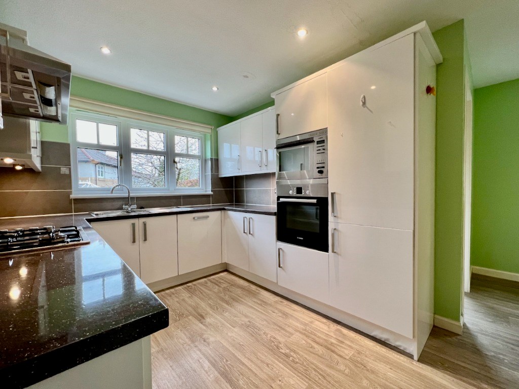 The large fully integrated kitchen includes a spacious dining area with utility wash room leading out to the back door and garden.