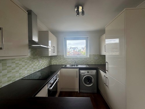 -Modern fitted kitchen with integrated oven and hob, white goods are included. Plenty of storage and worktop space.