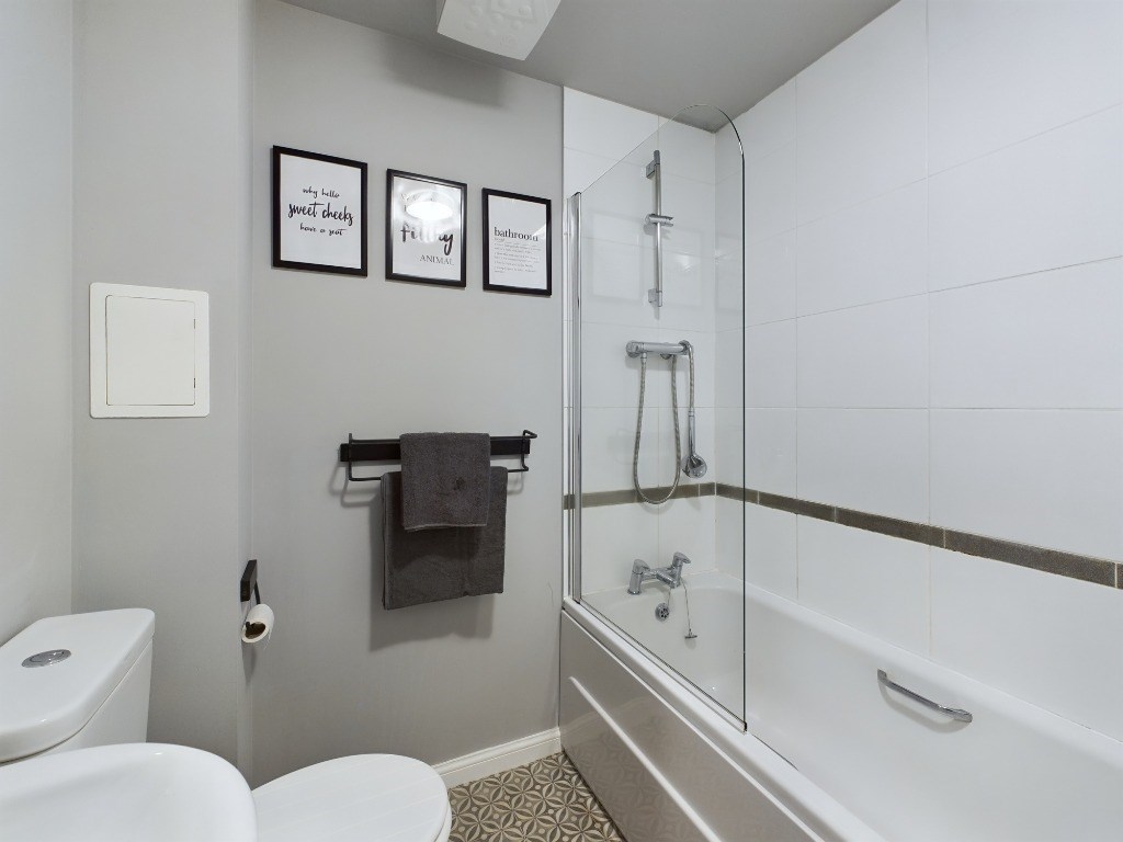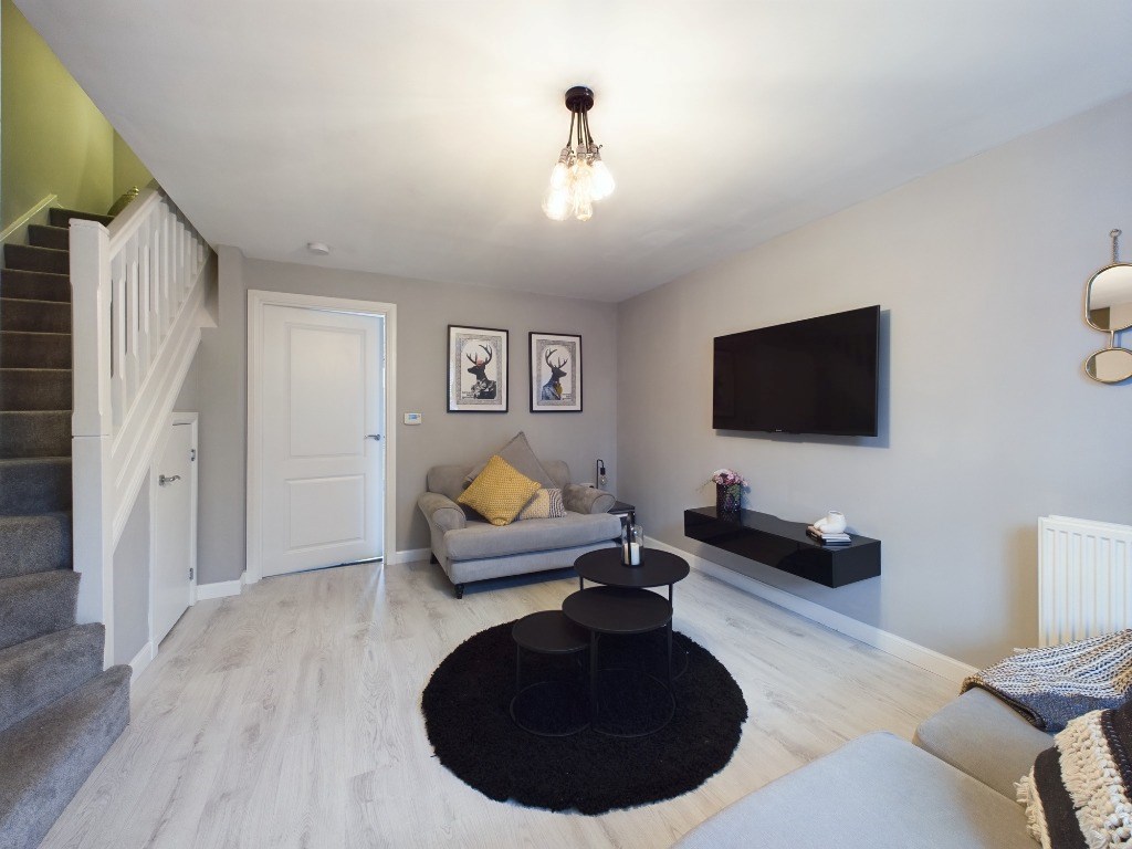 The property consists of vestibule, spacious lounge, kitchen/diner, utility area and WC on the lower level. On the upper level there is the master bedroom with built in mirrored wardrobes, tranquil family bathroom with shower over bath. There are a further two bedrooms overlooking the rear of the property. There is a fully enclosed rear garden, with gate access to the car park which has two allocated parking spaces.