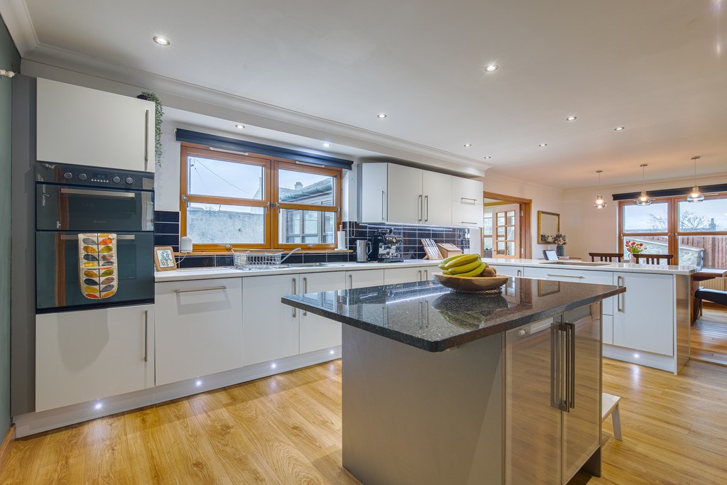 KITCHEN/BREAKFAST ROOM The kitchen for this property is located directly down the hall as you enter through the front. This kitchen features an impressive design with an island bar centre. The modern nature of the kitchen's features gives it a touch of class with enough space to really enjoy the preparation of all your homecooked meals. This room also features a fiercely designed dining table, suitable for accommodating all of your favourite guests.