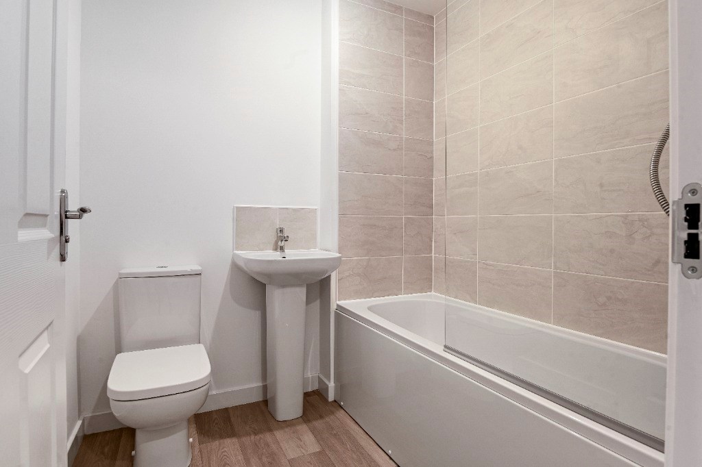 The property has been finished to a high standard and comprises an open-plan lounge/kitchen with adjoining utility room and WC, two spacious double bedrooms, and a family bathroom with a shower over the bath.