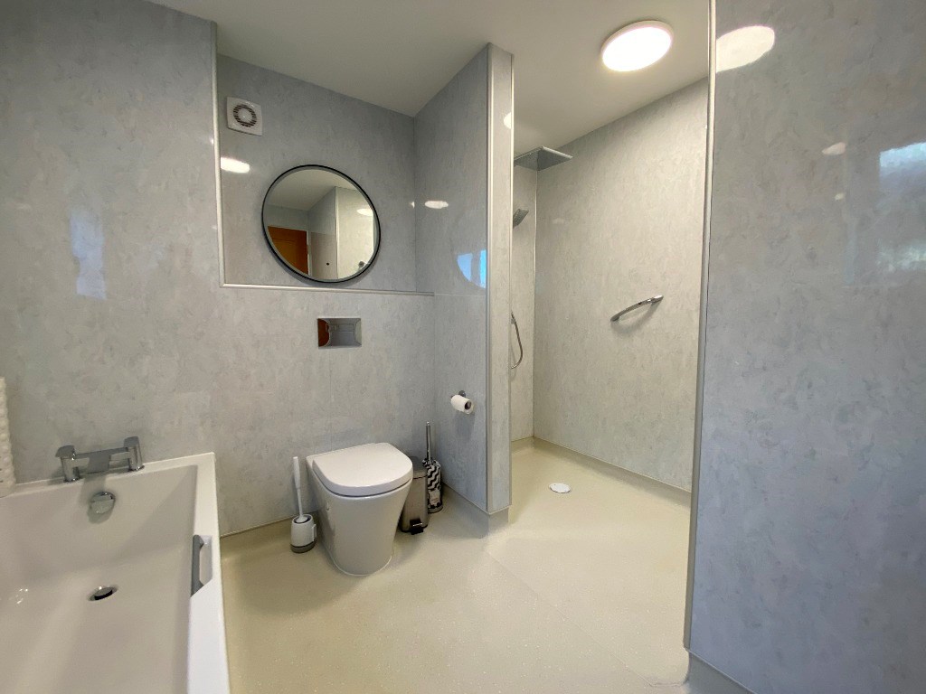 Upstairs, you'll find three generous double rooms and a study or dressing room. The family bathroom boasts both a bathtub and walk-in shower, perfect for convenience and relaxation.