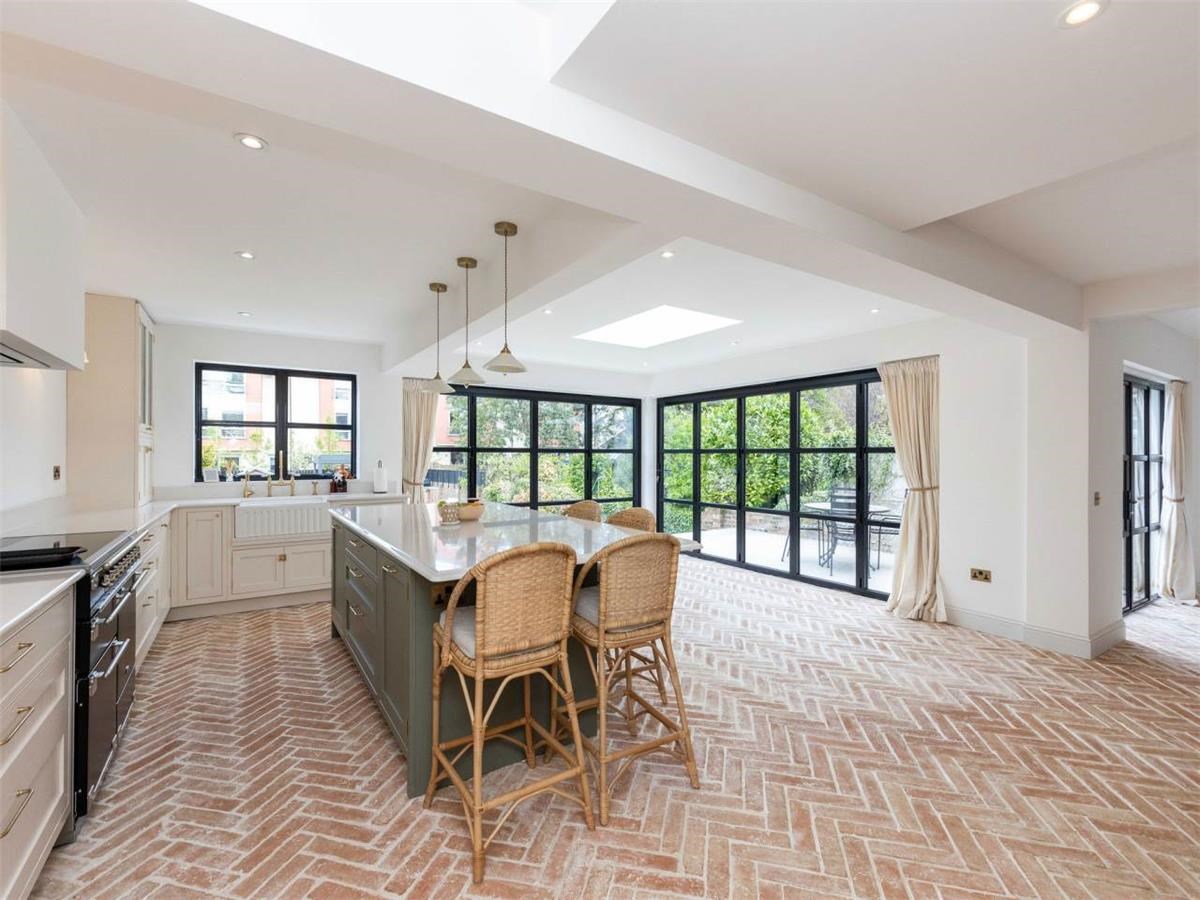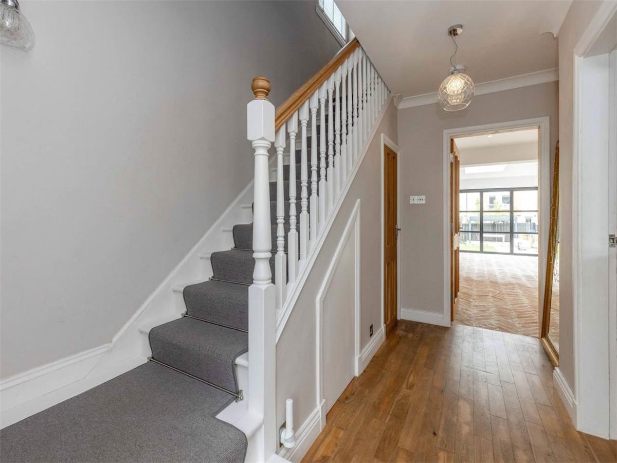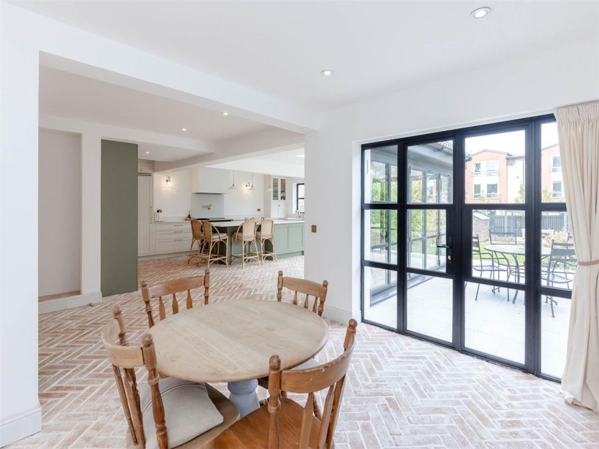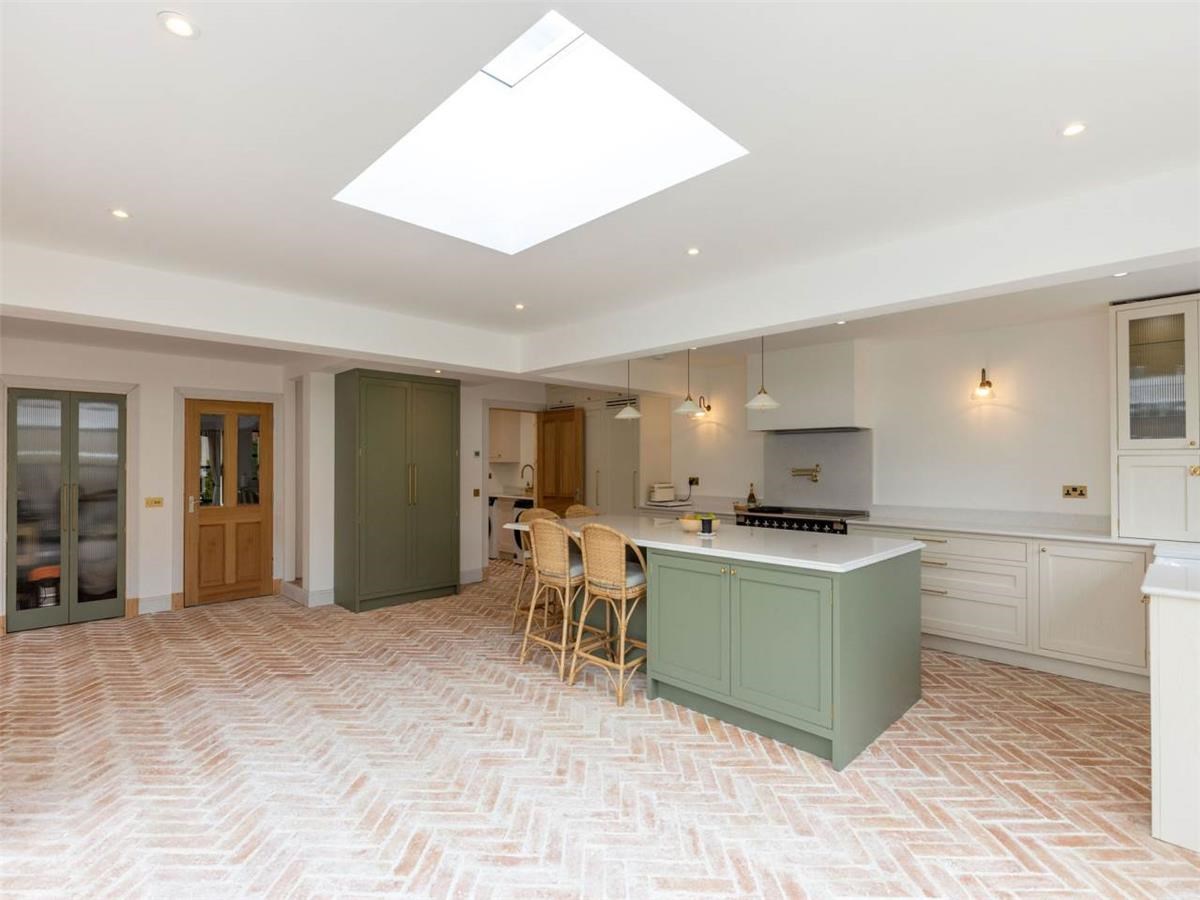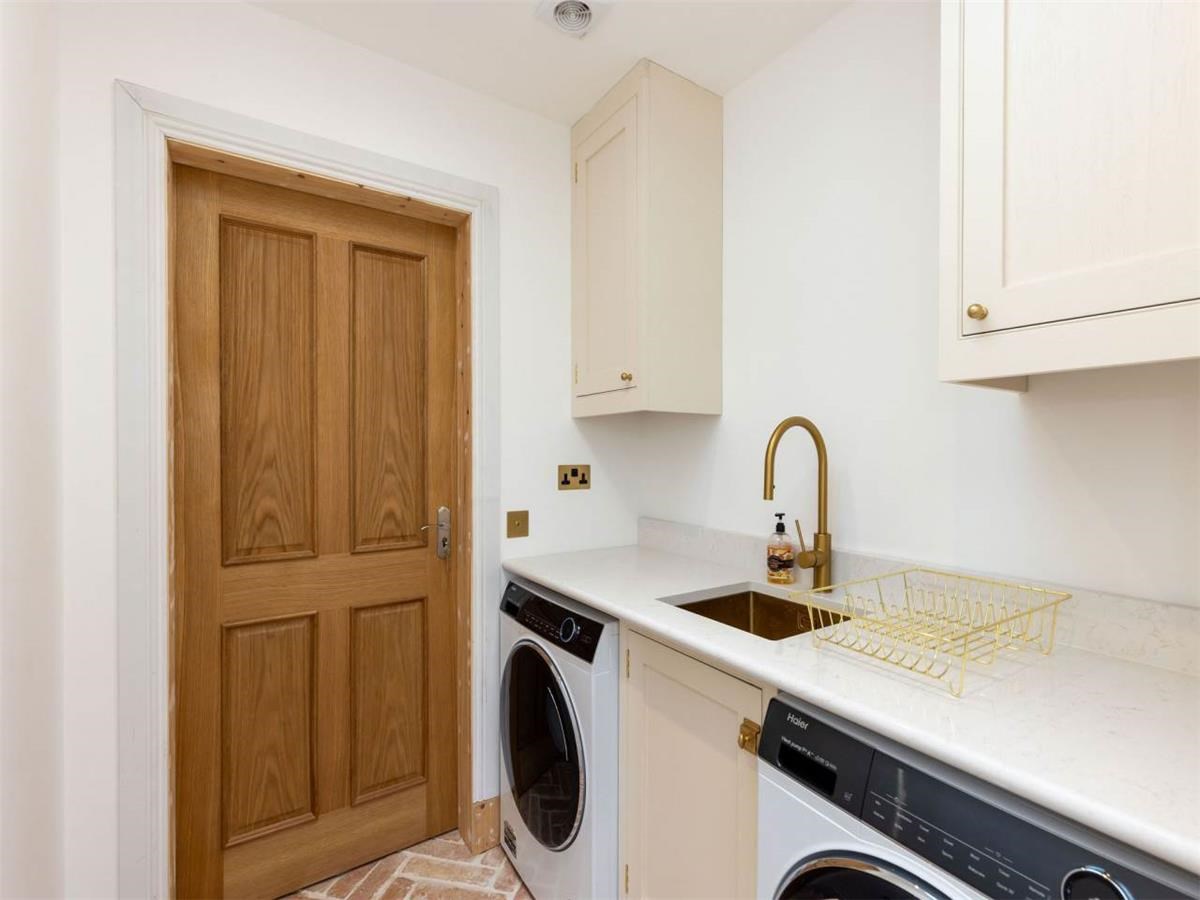 The beautifully extended home comprises: vestibule, entrance hallway, living room with bay window to the front, overlooking the front garden. A spacious and stylish kitchen with dining area and log burner, additional living space overlooking the large manicured garden. There are Bi-folding doors opening onto two patio areas overlooking the garden. The kitchen includes, a dishwasher and "Perrin & Rowe tap". A utility room is off the kitchen with a separate washing machine and tumble dryer, with access into the garage. There is also a shower room on the ground level.