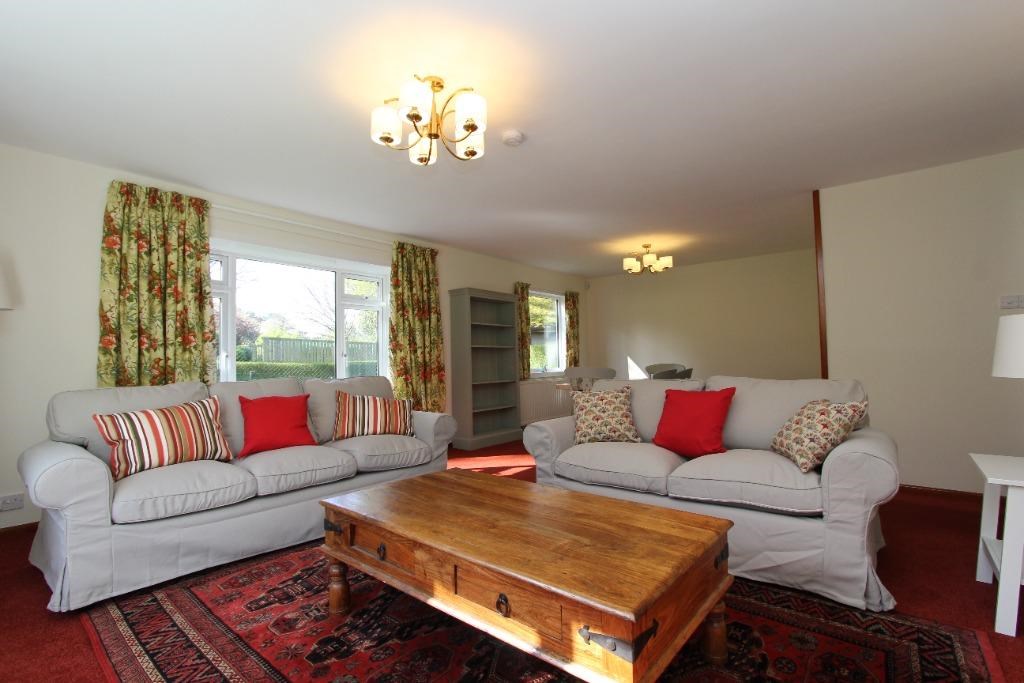 Harmony Cottage is an ideal family home with a large garden (maintained as part of the rent). It is arranged on one floor and is offered furnished. The house has a substantial open-plan living room with a dining area. Large windows look on to the sun-trap private garden with outside table and seating. The adjacent fully-fitted kitchen has ample storage space and is equipped with oven, fridge/freezer and microwave.