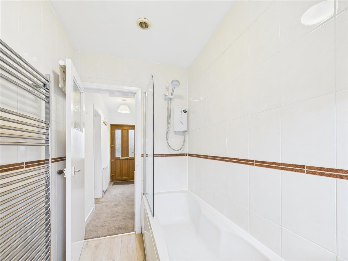 -Bathroom with shower over bath