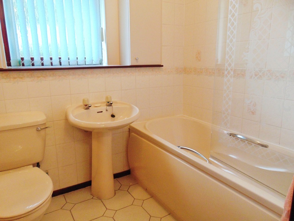 BATHROOM is fitted with a 3 piece cream suite and with an electric shower over the bath. Partially tiled walls and tiled flooring.