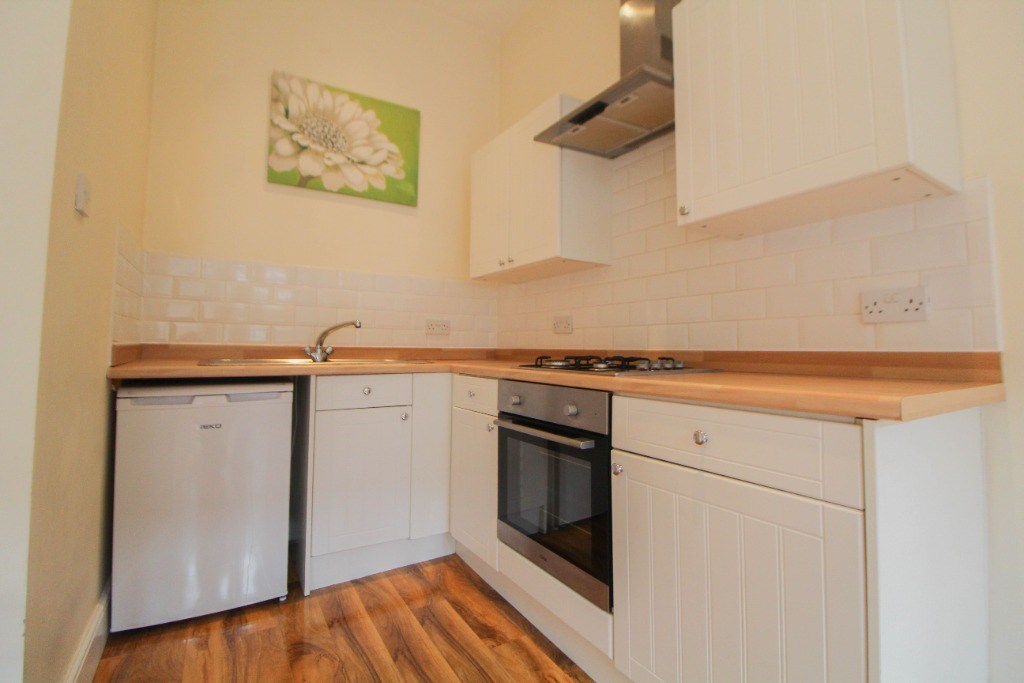 The accommodation comprises a bright open-plan kitchen and living area, ideal for modern living and entertaining. The kitchen is well laid out with ample storage and worktop space, complemented by a separate utility room providing additional practicality. The property further benefits from a spacious double bedroom with a built-in wardrobe, offering excellent storage, and a well-appointed bathroom.