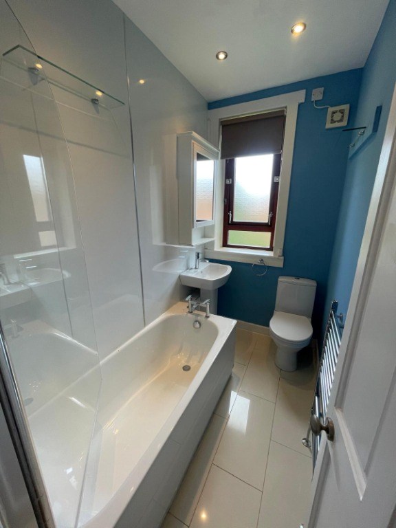Entry to the building is via security entry into the communal close. Internally, the accommodation comprises of reception hallway with storage cupboard, good sized lounge with feature bay window, fully refitted kitchen with appliances including integrated oven, gas hob, extractor hood, free standing fridge/freezer and washing machine. There are two double bedrooms both with built-in wardrobes and a bathroom white three piece bathroom suite and with shower over the bath with glass shower screen.