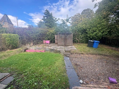 Back Garden- Laid to grass with a shed, driveway, apple tree and various other shrubs and bushes. Very private and away from public eye.