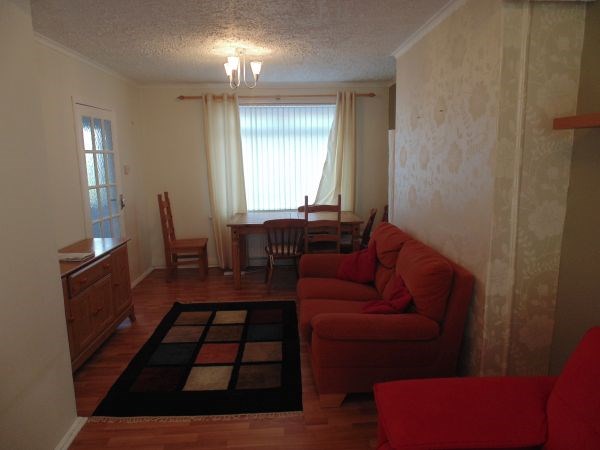 Internally the property consists of a large lounge with suite & dining table, patio doors to back garden, good sized kitchen with white goods and door to back garden.