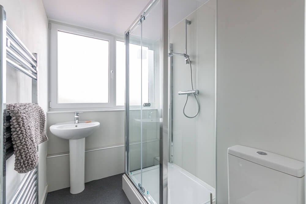 ~Attractive shower room with three-piece suite including mains shower