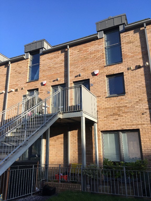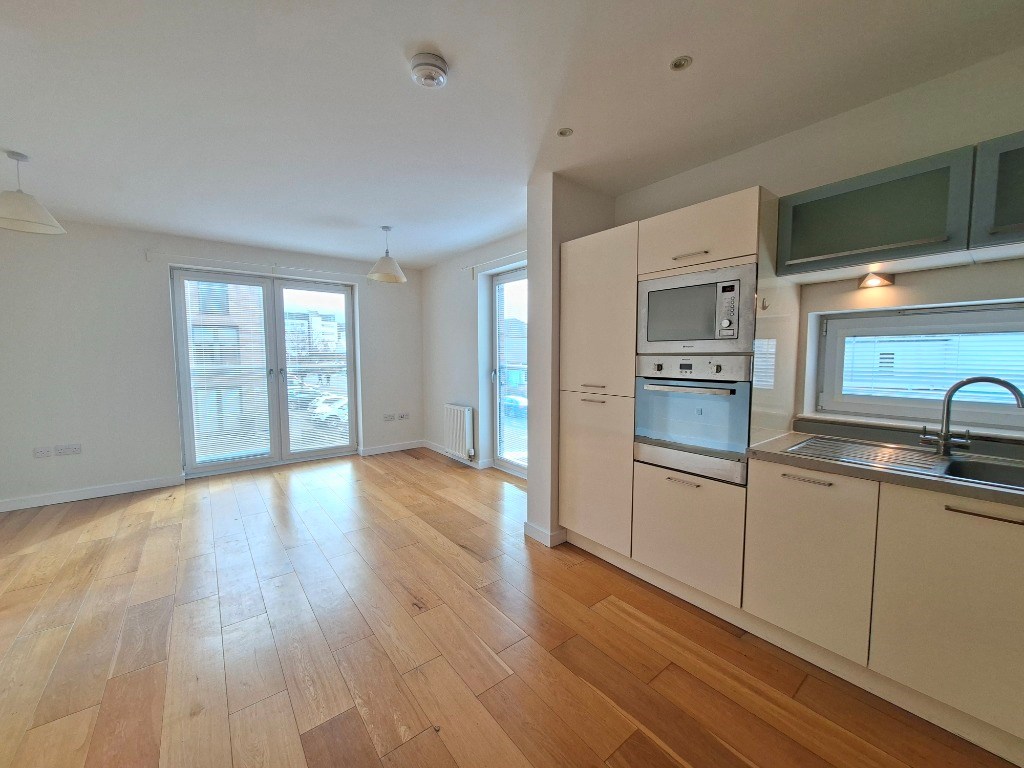 The property is accessed via a shared external staircase and has opens views of Calton Hill and Edinburgh Castle. Accommodation comprises; on entrance level hallway, south-facing open plan living room / dining / kitchen with French doors to Juliette balcony and WC with utility room. Stairs lead up to two double bedrooms both with built-in wardrobes and bathroom.