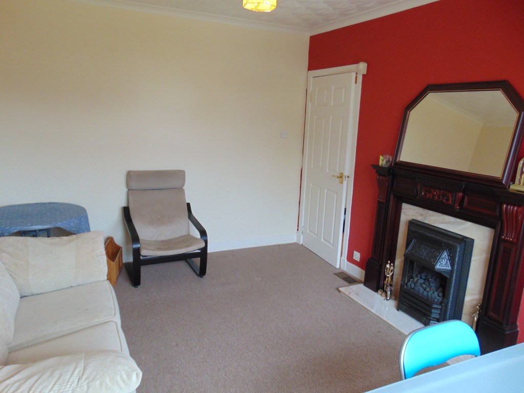 LOUNGE Lounge is a good size with large windows out to the front. Included in the rental is a gas fire with hearth and surround, 2 seater sofa, occasional chair and a 4 seater dining table. Storage cupboard. Carpeted flooring.