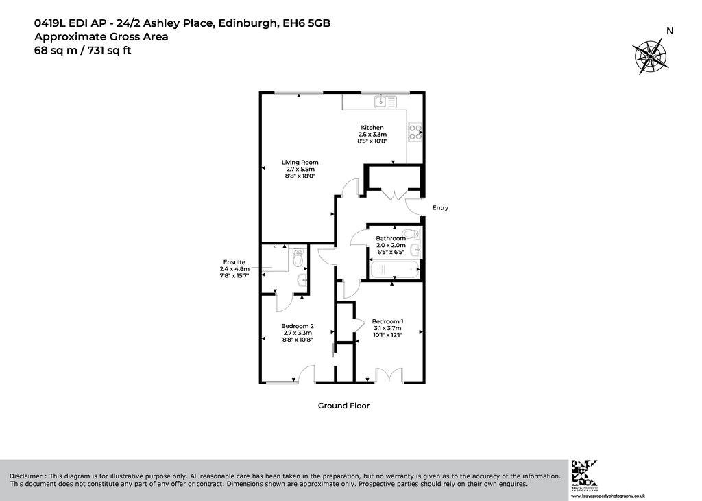 Spacious 2 bedroom, 2 bathroom flat located on Ashley Place, which is a quiet side street situated just off Bonnington Road. It is within walking distance to Leith Walk Great Junction Street, and there are excellent bus routes available from Bonnington Road and Newhaven Road, just moments away. This is a very popular area as there are a variety of local shops, cafes, and supermarkets, as well as Pilrig Park, within close proximity.