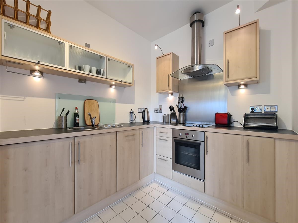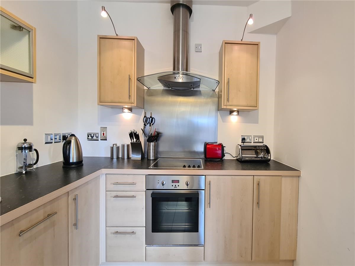 In move-in condition this lovely home is accessed by way of a secure entrance with lift and stairs to floors. There is a warm and welcoming reception hall with good built-in storage. Creating the perfect ambience for relaxing/entertaining the light and airy lounge/dining room is located with window formation to front providing excellent natural light and Castle views beyond. The patio doors give direct access to the balcony which has ample space for bistro table/chairs. The stylish open plan kitchen has a range of modern base and wall mounted units with co-ordinating work surfaces/splash backs and integrated appliances. There are two bright and sunny double bedrooms; one with matser en-suite and a third bedroom which has recently been used as a home office, finally there is a modern bathroom comprising classic white three-piece suite with shower unit /glazed shower screen over bath. Further benefits include; private underground parking, electric underfloor heating, electric blinds, dishwasher, American style fridge/ freezer, double glazing and good built-in storage/wardrobes.
