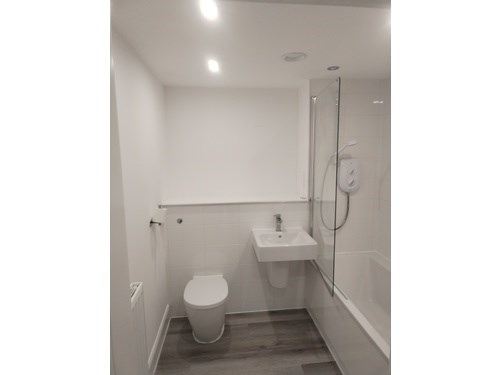 The kitchen/living room/dining room is a large open-plan space, with lots of natural light. The kitchen has integrated appliances from the fridge freezer, dishwasher and a washing machine situated in the cupboard. The kitchen has a fan oven and hob for the cooking facilities.