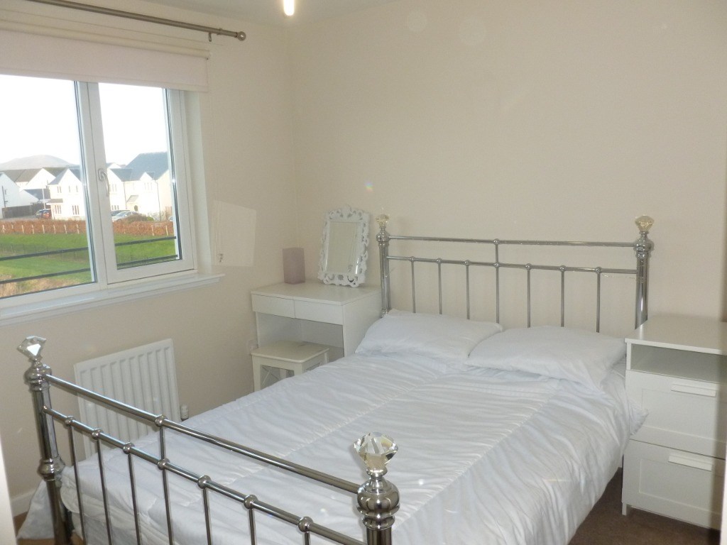 Located on the 2nd floor, the accommodation for let comprises: entrance hall with storage; large and welcoming open plan lounge/kitchen with space for dining table and chairs. From the lounge, there is access to the balcony area giving attractive open views. The kitchen area has a good range of modern wall and base units - white goods are included. Situated to the rear is the bright master bedroom with en-suite shower room and built in mirrored wardrobes. Bedroom 2 is of good proportions with an open outlook and mirrored built in wardrobes. Spacious internal bathroom with feature tiling to bath area and above wash hand basin and wc which is situated within vanity unit giving worktop space. Electric shower over bath.