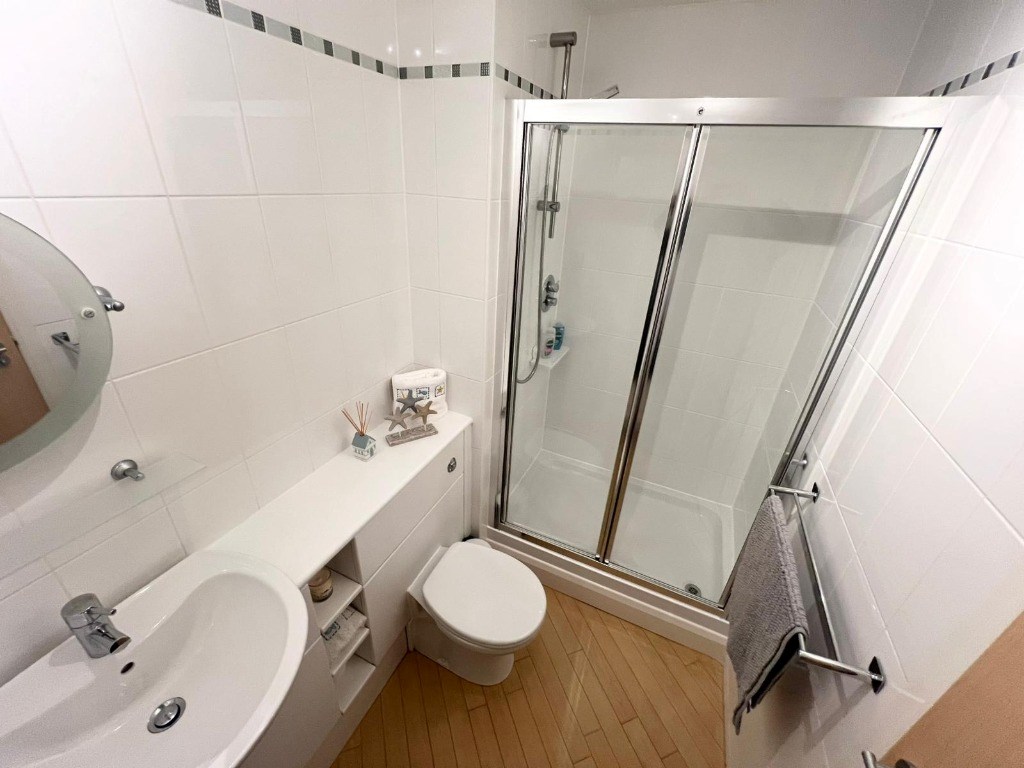 Located on the top floor of this popular development, the property is bright and spacious, measuring 60 square metres, and comprises: welcoming entrance vestibule with storage, inner hall leading to the open plan lounge with space for dining, the well-equipped modern kitchen, two double bedrooms; both with built in storage and one with modern ensuite shower room and a modern family bathroom.