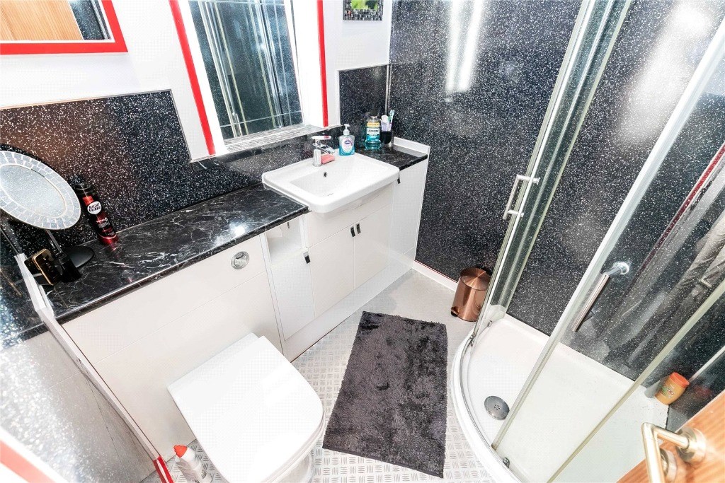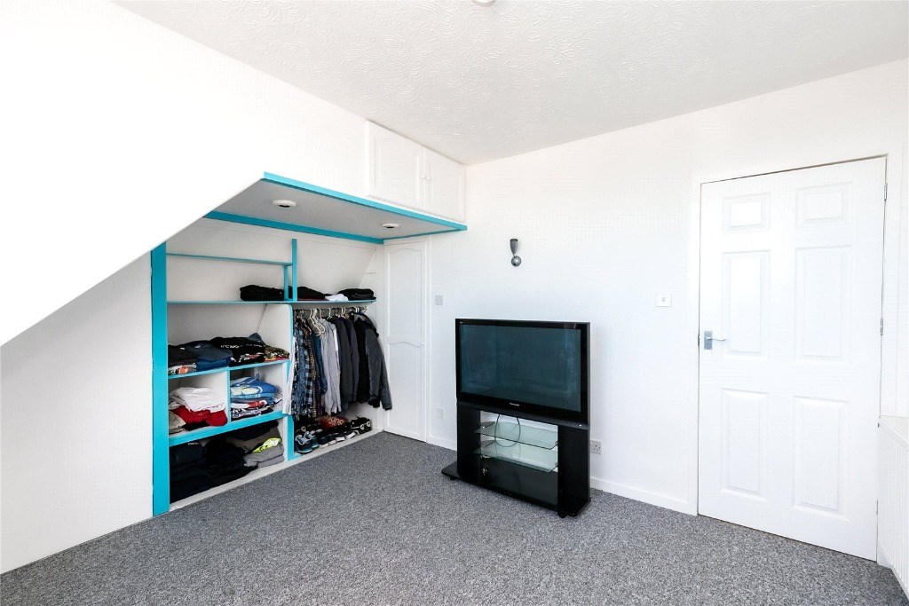 On the ground floor, the bright hallway leads to the living room with a fabric suite & TV. To the rear of the property is the modern dining kitchen which has been equipped with all the usual appliances including a fridge freezer, oven & gas hob. The utility cupboard houses the washing machine & tumble dryer and provides ample storage. There’s also a modern shower room. Access to the garden can be gained from the kitchen and it benefits from a bbq area, a summerhouse for entertaining and storage shed.