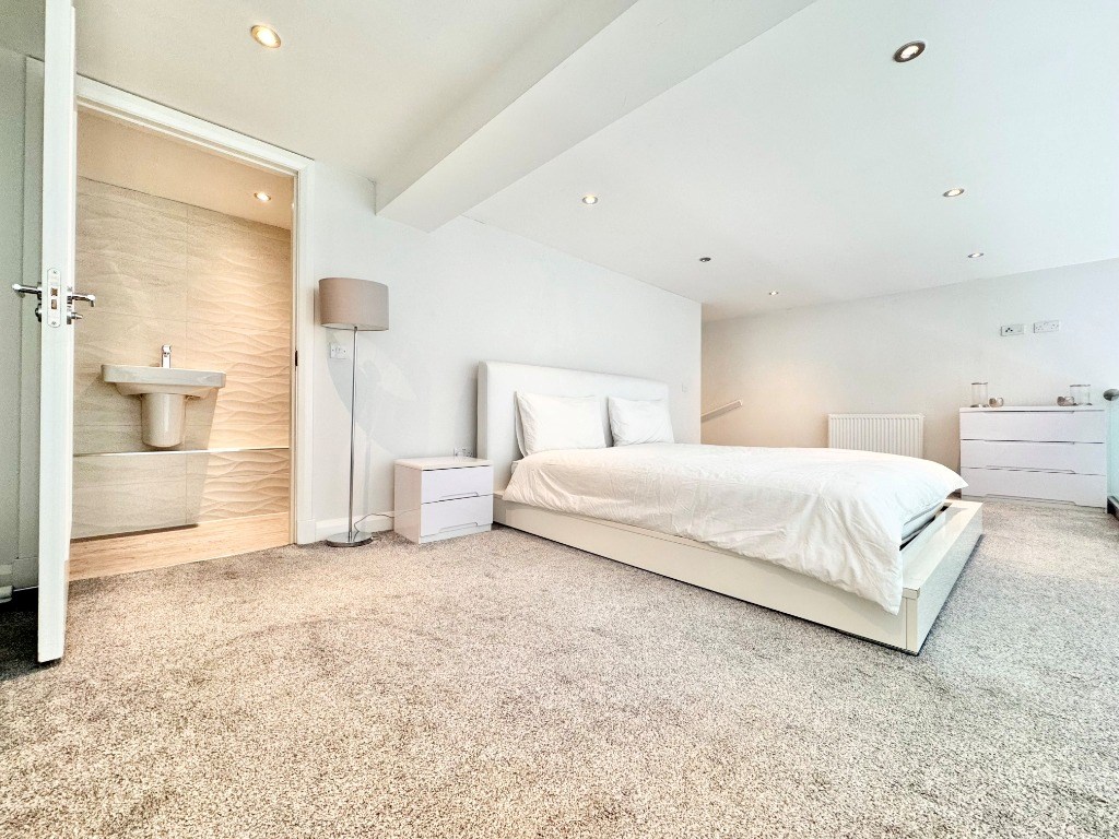 On the upper floor there is a fantastic mezzanine level that houses a large master bedroom with fitted wardrobes and a superb en-suite shower room.