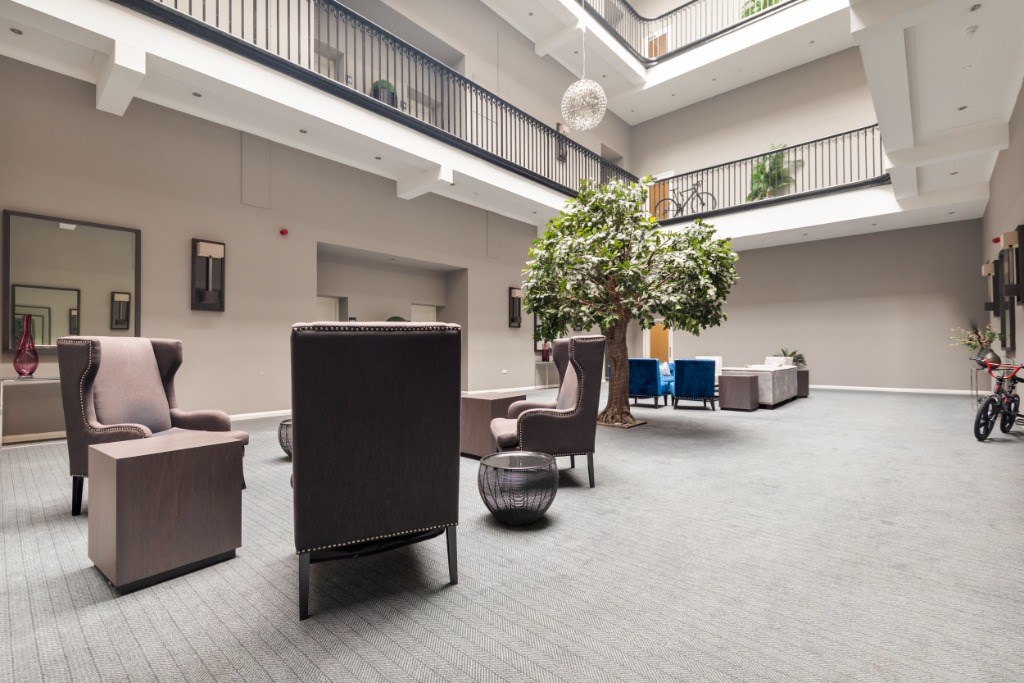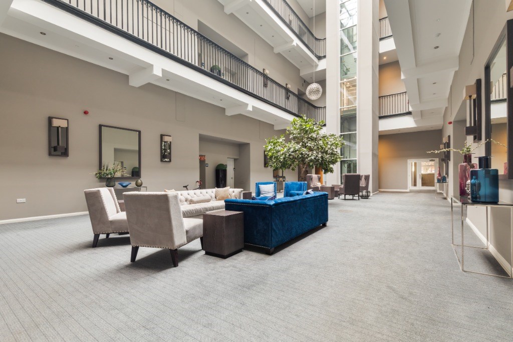 The property enjoys access to beautifully landscaped communal grounds, an allocated parking space within the residents’ car park and an impressive communal entrance with generous seating area. Residents benefit from lift and stair access to all floors and a stunning central atrium providing superb natural light through a grand skylight.
