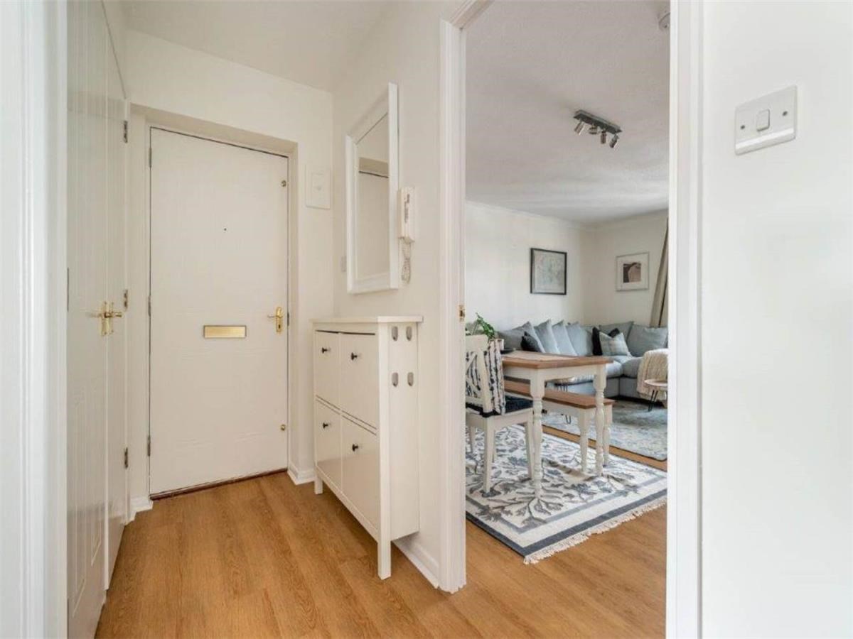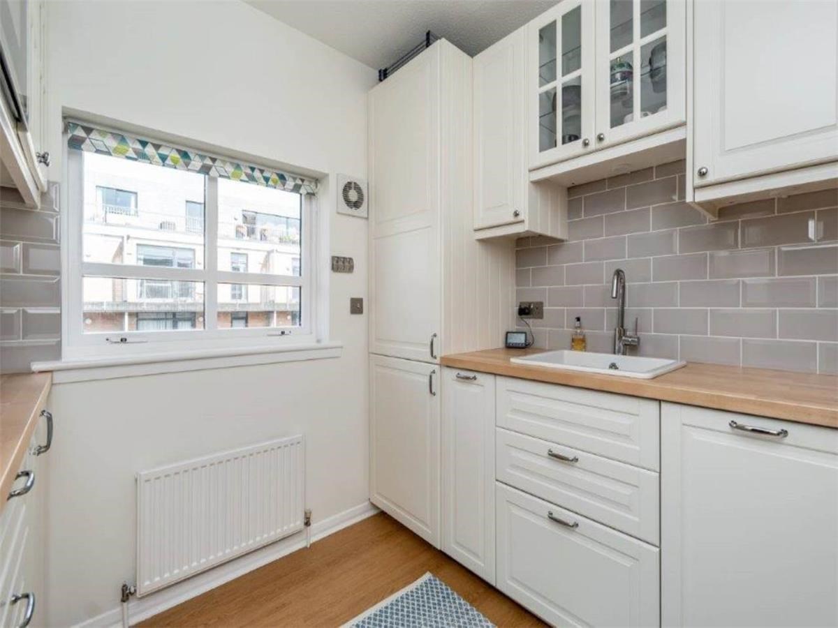 The immaculately presented apartment sits on the third floor. The accommodation comprises: a welcoming entrance hallway with good sized storage cupboards, a bright and generously proportioned living room with dining area, a stunning contemporary kitchen including a dishwasher. Main bedroom with an elegant en-suite shower room, second well-sized double bedroom currently used as an office. The flat is completed by a stylish main bathroom with shower over bath tub.