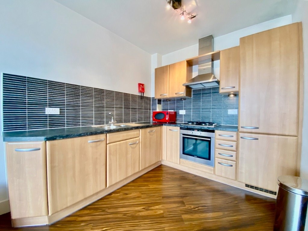 Large modern windows create a bright and airy feel to the apartment and offers modern spacious living, complemented by good quality finishes.