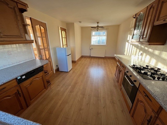 UnFurnished Accommodation:- Spacious family home in desirable location with lounge with dining area, 3 bedrooms, kitchen with white goods, Bathroom with bath and shower cubicle, double glazing and Gas Central Heating. Also benefits from garage and gardens to the front and rear. Must View to be appreciated!!