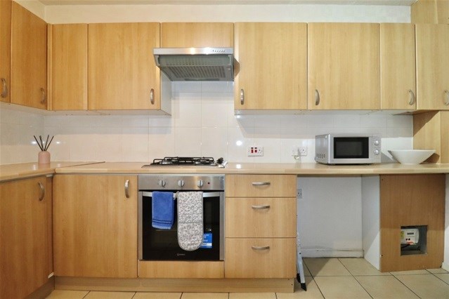 The property comprises a welcoming entrance hall with a useful storage cupboard, a bright lounge furnished with a large sofa and enhanced by a decorative mantle, creating a comfortable and inviting living space. There are two generously sized double bedrooms, both benefiting from built-in storage as well as additional chests of drawers, providing excellent storage throughout.