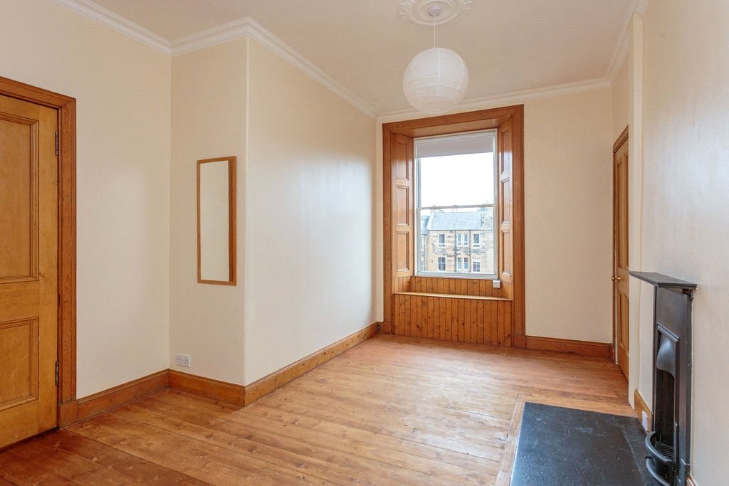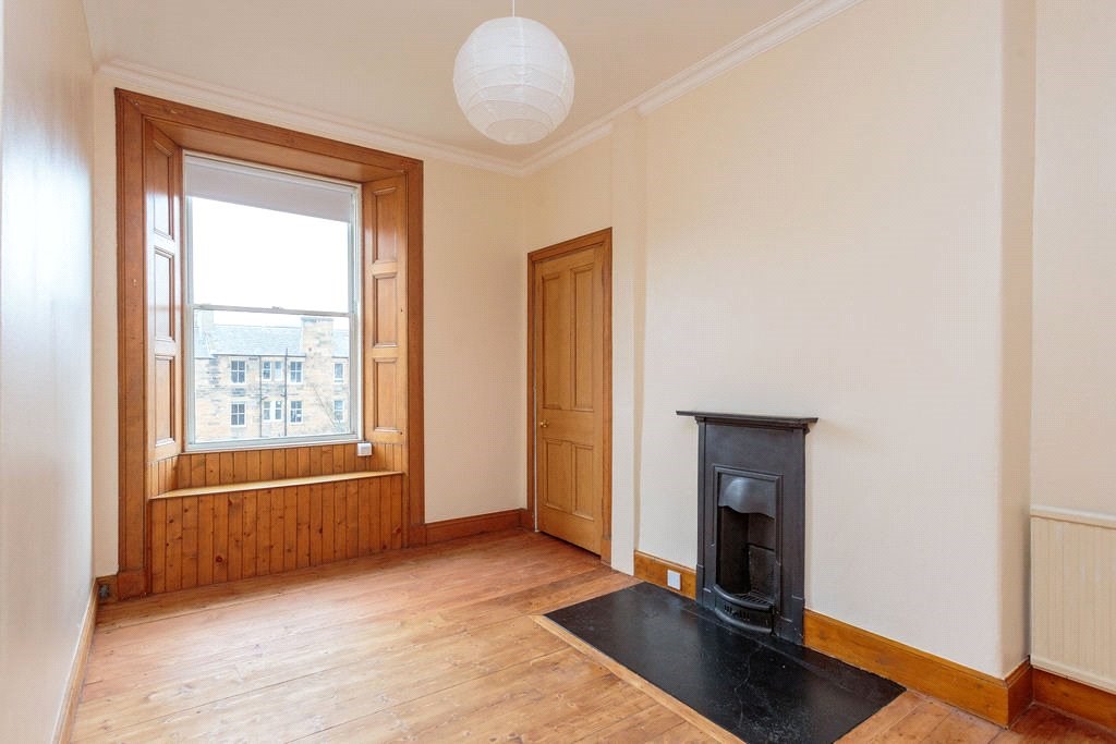 This fourth floor unfurnished property in Edinburgh. Comprises a large bay windowed lounge, a fully fitted kitchen with integrated appliances, two double bedrooms, a full bathroom with shower, and a boxroom/study. Further benefits from gas central heating, ample storage, permit zone parking, and communal gardens.