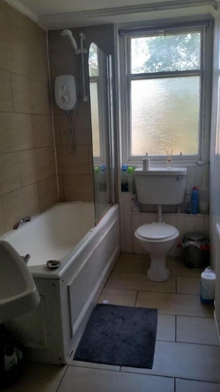 Bathroom with shower over bath