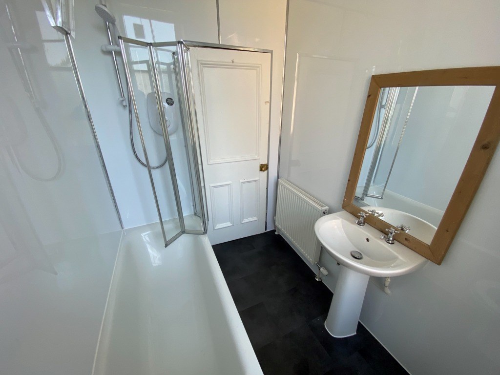 -three piece bathroom suite with electric shower.