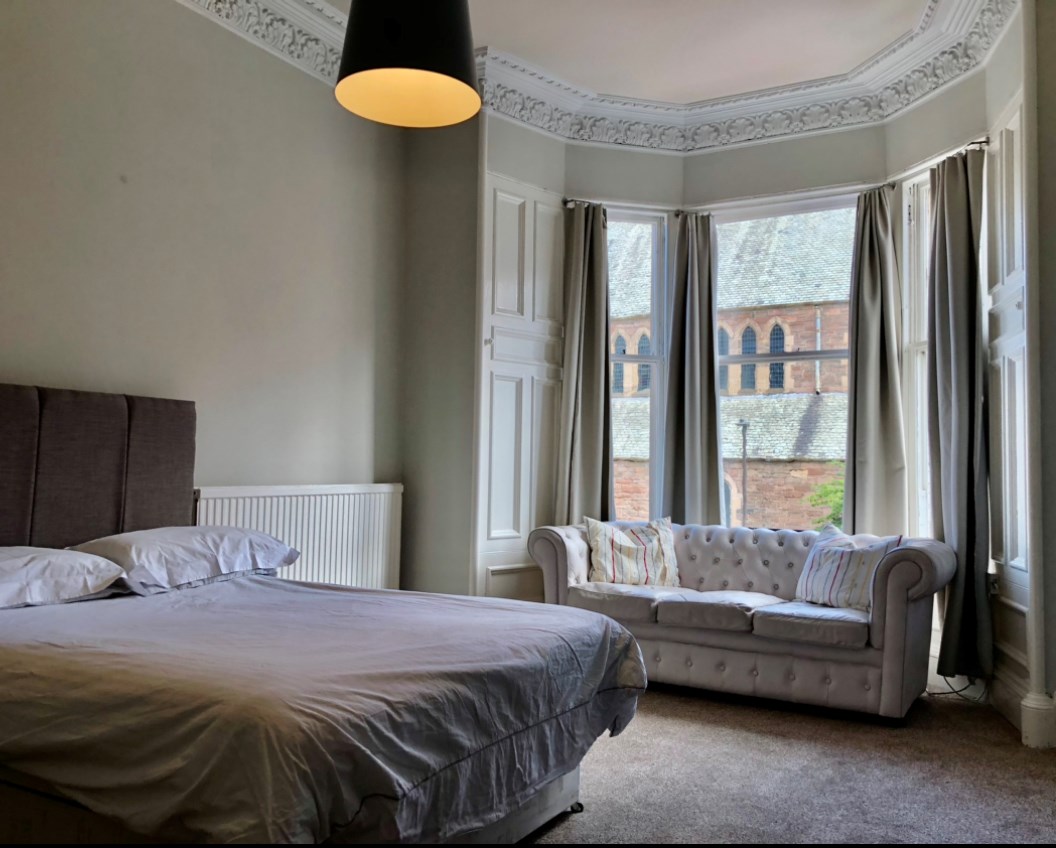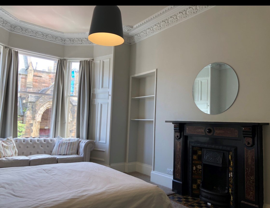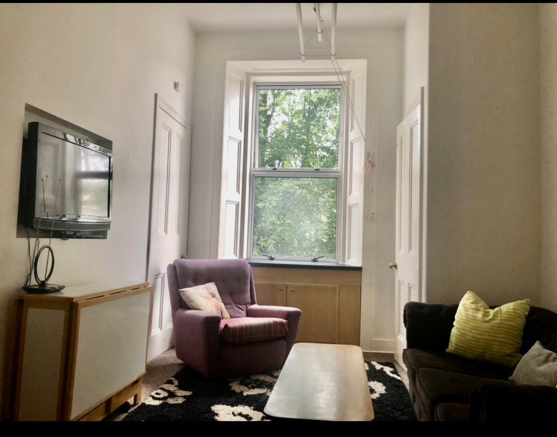 Bright, spacious, 3 double bedroom HMO, fully furnished in Bruntsfield. Open plan living/kitchen with separate utility room off with W/M. First floor flat, in a renovated stair, comprises modern kitchen (dishwasher) bright bathroom with bath and shower over. Three large double bedrooms, GCH, shared back garden, great storage including 2 cupboards in hall and the utility room. Non smoking and no pets please. Large front bedroom has a walk in dressing room.