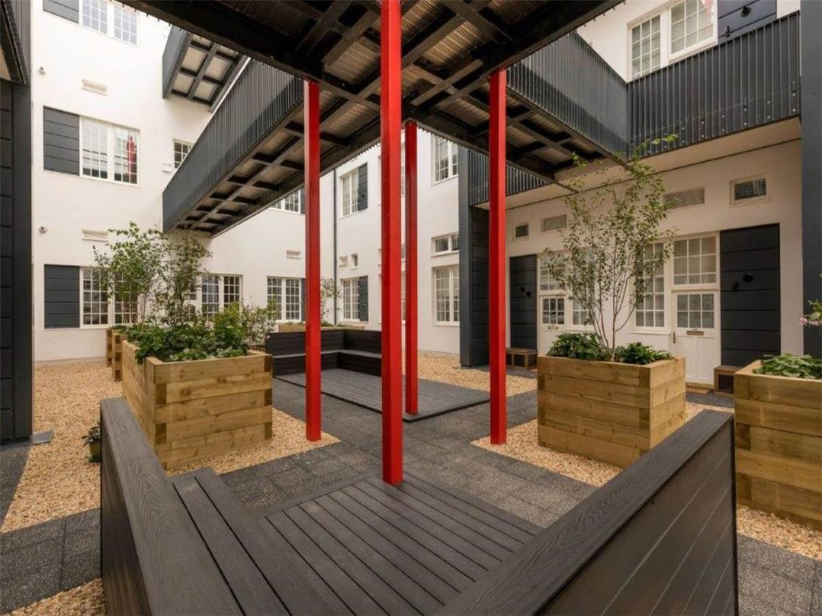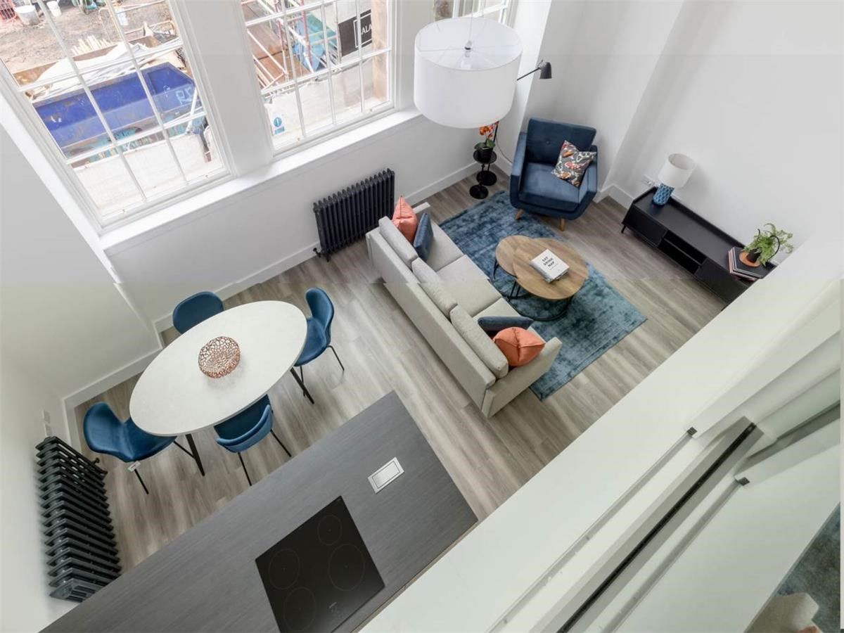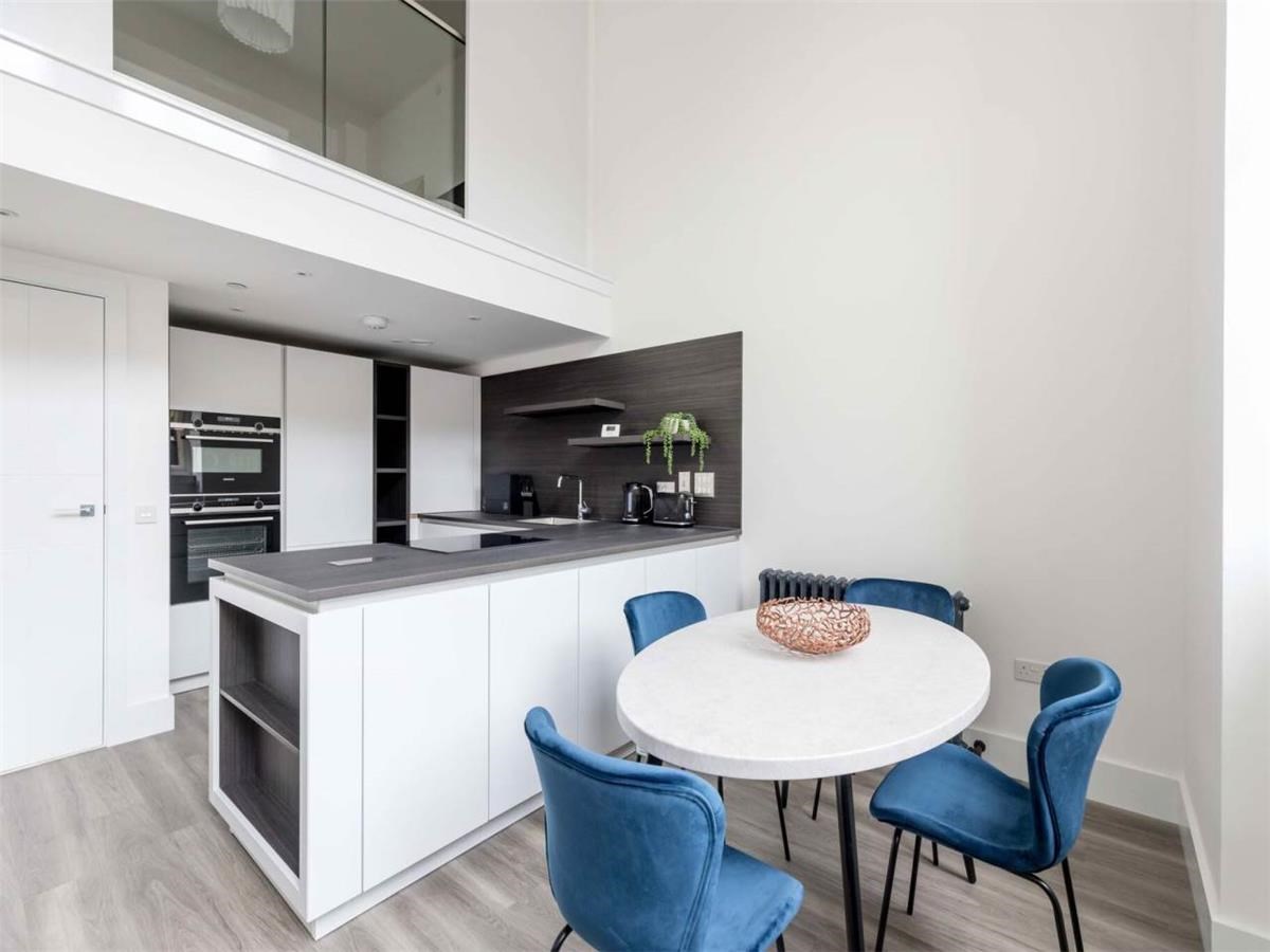 An intricate mezzanine level where the bedroom sits, with fitted wardrobes and en-suite shower room. The property is designed to offer the ultimate in modern living yet with an abundance of restored originality. The property further benefits from gas central heating, double glazed windows, good storage, bike shed and private allocated parking. An open inner courtyard provides a valuable recreational area for residents too.