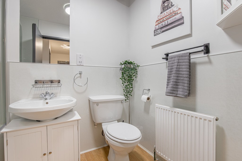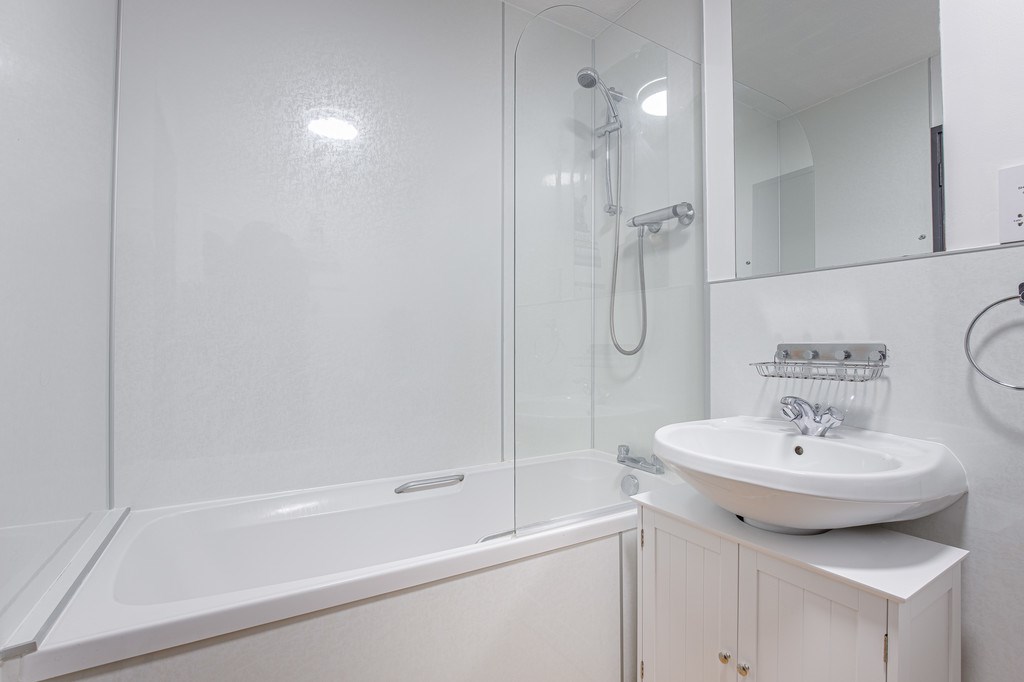 BATHROOM The bathroom for this property provides the tenants with the ideal washing space to complete this beautiful property. With multiple storage cupboards, toilet, sink area and a bath that doubles up as a shower, the decision between a quick shower and a long soak in the bath - is left up to the tenant.