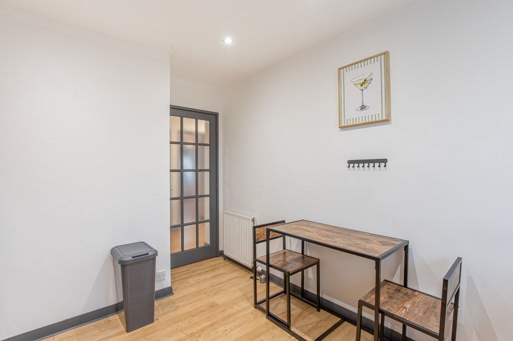 LIVING ROOM The living room for this property greets you with a sleek wooden tile flooring style and a bright living space provided by two large street facing windows. With a refreshing modern design, the room is tied together by two large reclining sofas, ideal for kicking back and relaxing at any time of day.