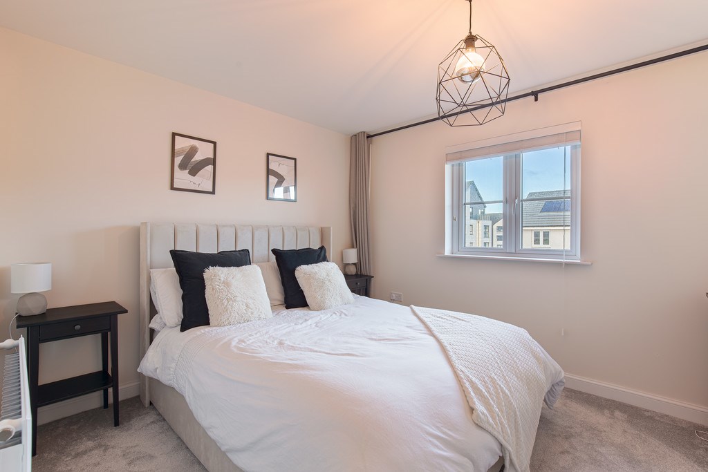 BEDROOM 1 The first bedroom for this property is located down the hall and on the left as you reach the landing. This room greets you with a warm and bright interior courtesy of two rear facing windows. The room itself consists of a soft carpet floor, wall mounted television, double bed, twin bedside tables and a large double panel mirror wardrobe. Creating the ideal space to drift off into a great night's sleep.