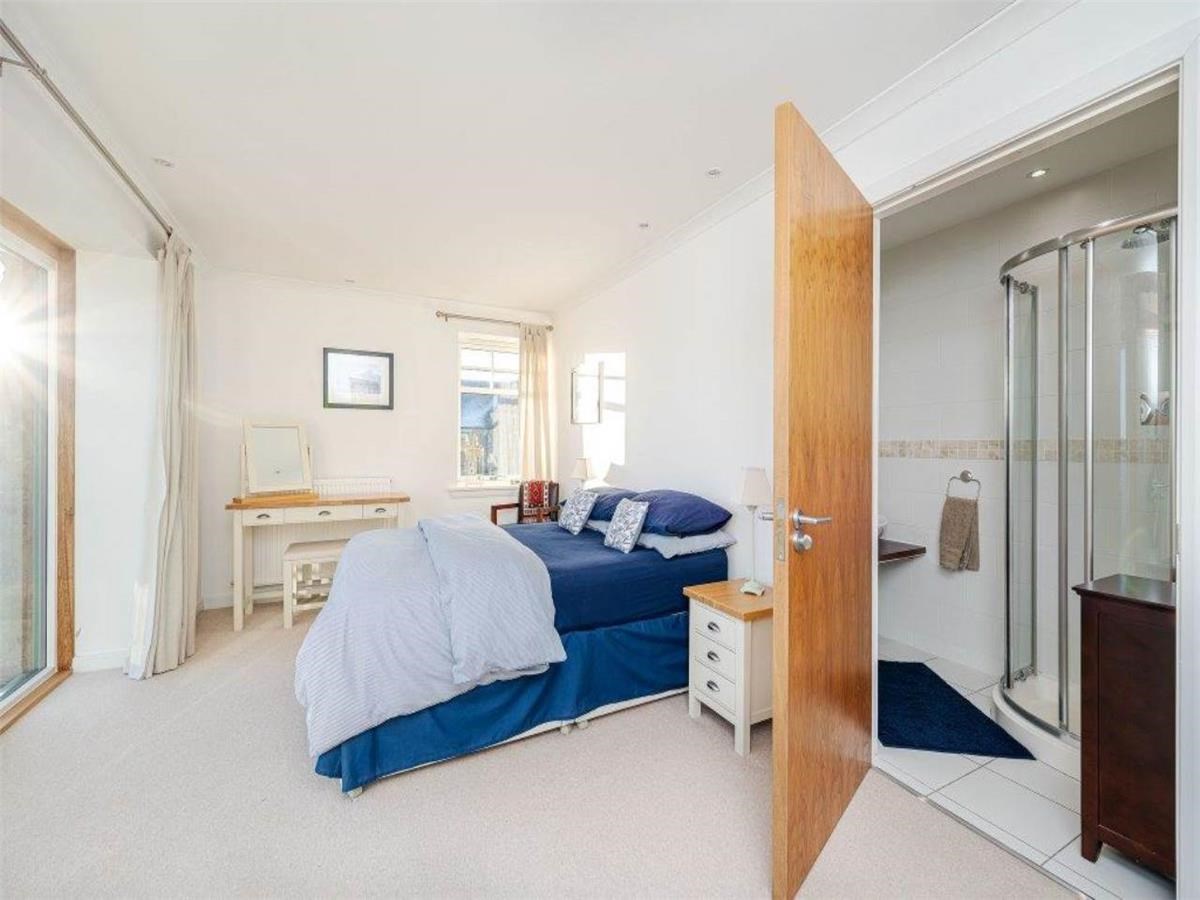 Upstairs, the main bedroom with en-suite shower room and balcony overlooking the Firth of Forth. Three further bedrooms, one with en-suite shower room and the family bathroom with shower over bath tub. The property further benefits from gas central heating, double glazing, great storage and private outdoor paved garden area to enjoy the views.