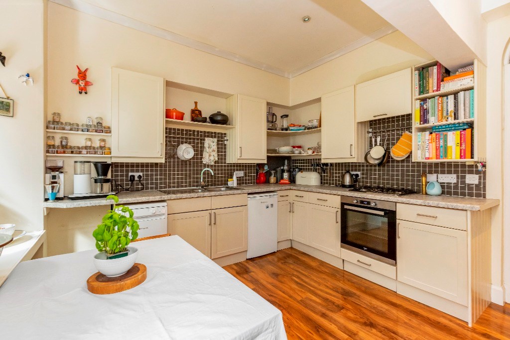 The kitchen, which will be freshly renovated with new countertops, backsplash and cabinets for the new tenancy, features a dishwasher, fridge, electric oven and gas hob, as well as plenty of floor, worktop and cupboard space. The kitchen is adjacent to the conservatory (which could function as a brilliant dining area, although there is ample space for a dining table in the kitchen or the living room). The conservatory stretches out into the private, enclosed garden. This sheltered, natural sanctuary can be accessed directly from the lane to the rear of the property. A brilliant outdoor space for relaxing and entertaining, it also includes a herb garden and a washing line. The property is pet-friendly, making this garden a brilliant addition for those with four-legged friends!