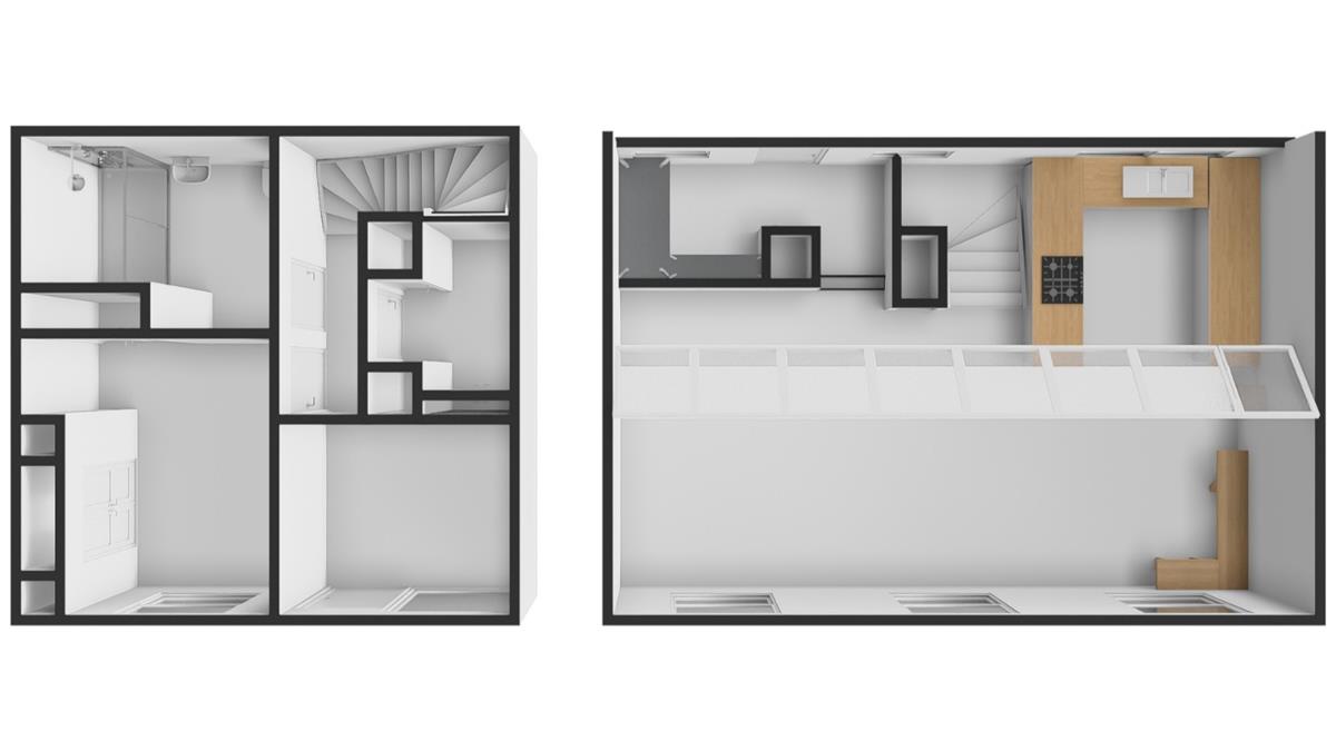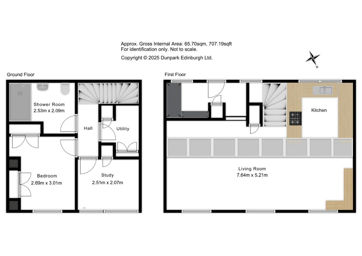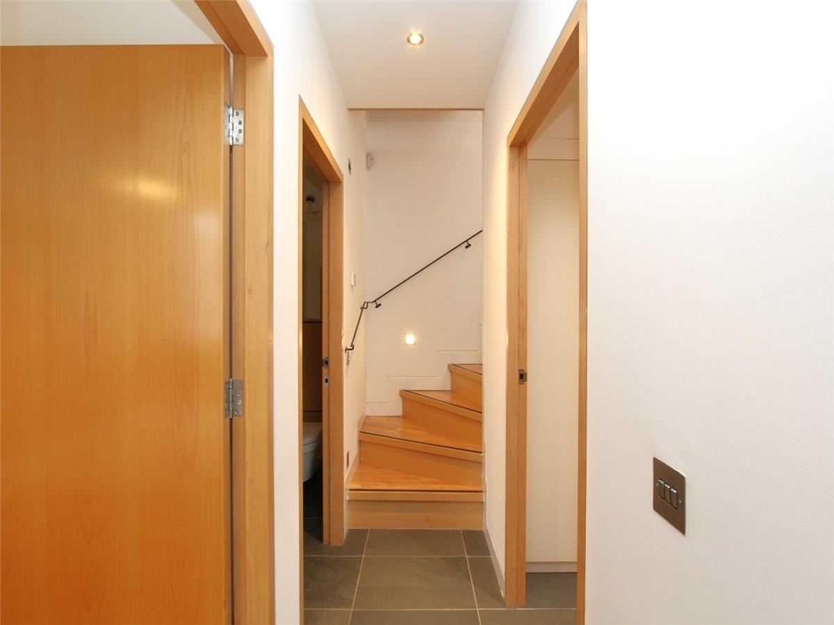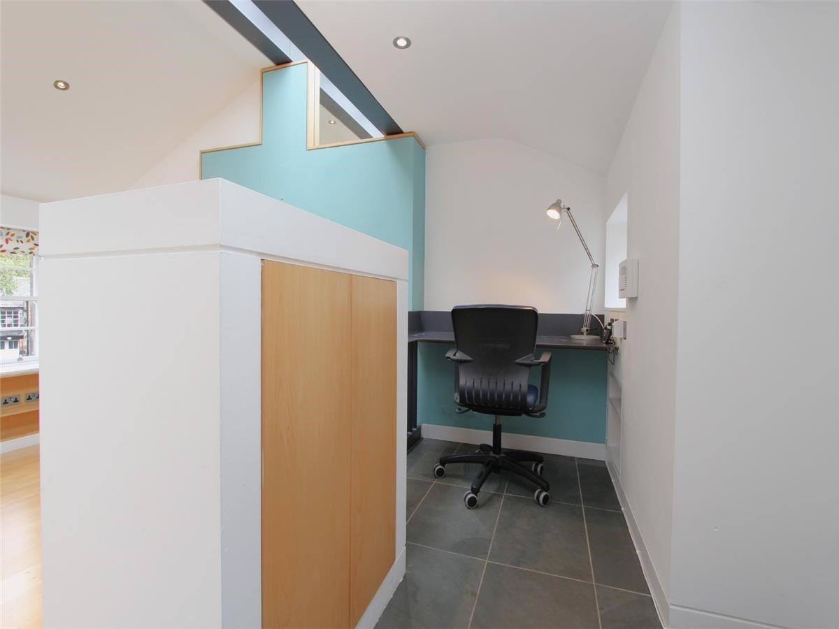 The main entrance, located on the top floor, opens into a bright, open-plan living and dining space, flooded with natural light. Adjoining this area is a fully fitted kitchen and an integrated study, creating a warm and welcoming environment for both everyday living and entertaining.